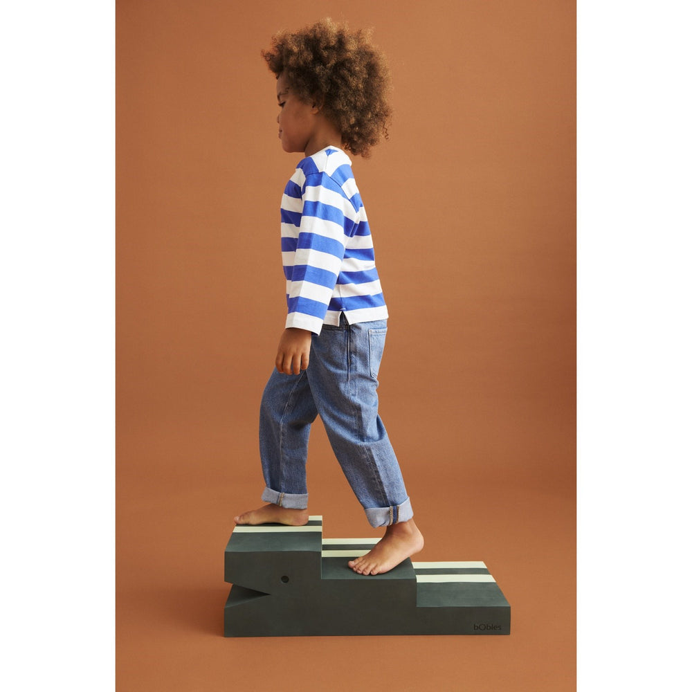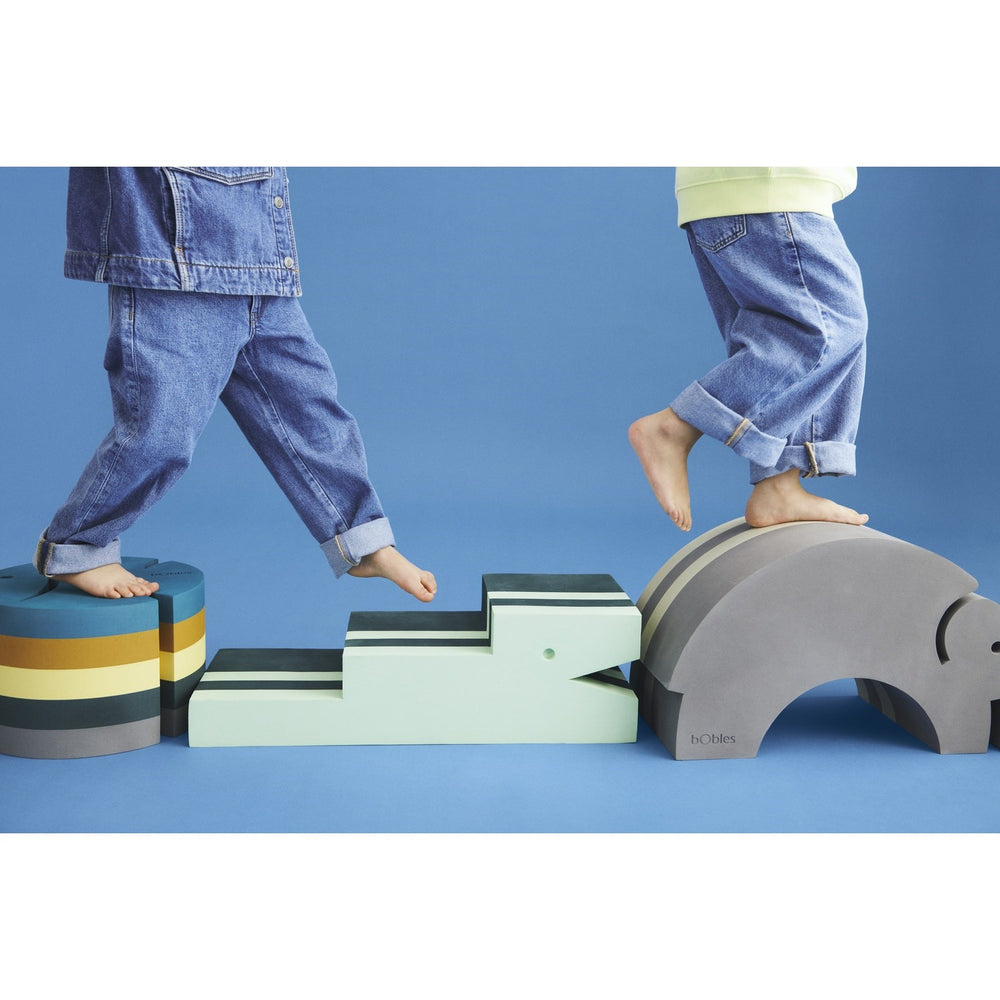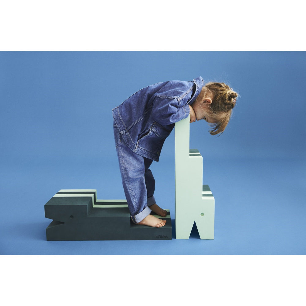 För de allra minsta erbjuder bObles Crocodile en säker och stabil grund där de kan ligga på rygg och utforska sin omvärld. När ditt barn börjar krypa fungerar den som en perfekt första trappa som också tränar barnets balans och fallreflektioner i en trygg miljö. Efterhand som barnet växer och blir mer självständigt blir krokodilen inte bara en rolig utmaning utan även en hjälp att klättra upp på sängen eller sitta vid ett bord, vilket stärker deras självförtroende och självständighet.