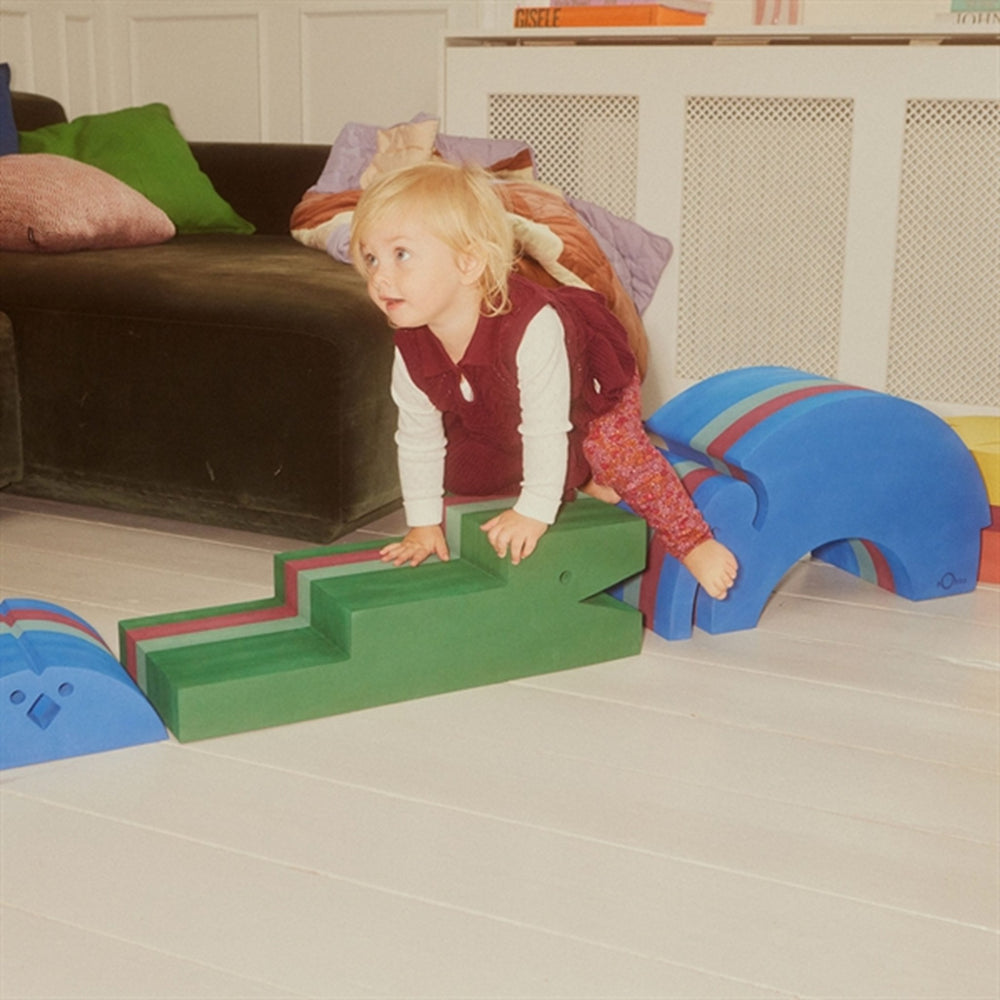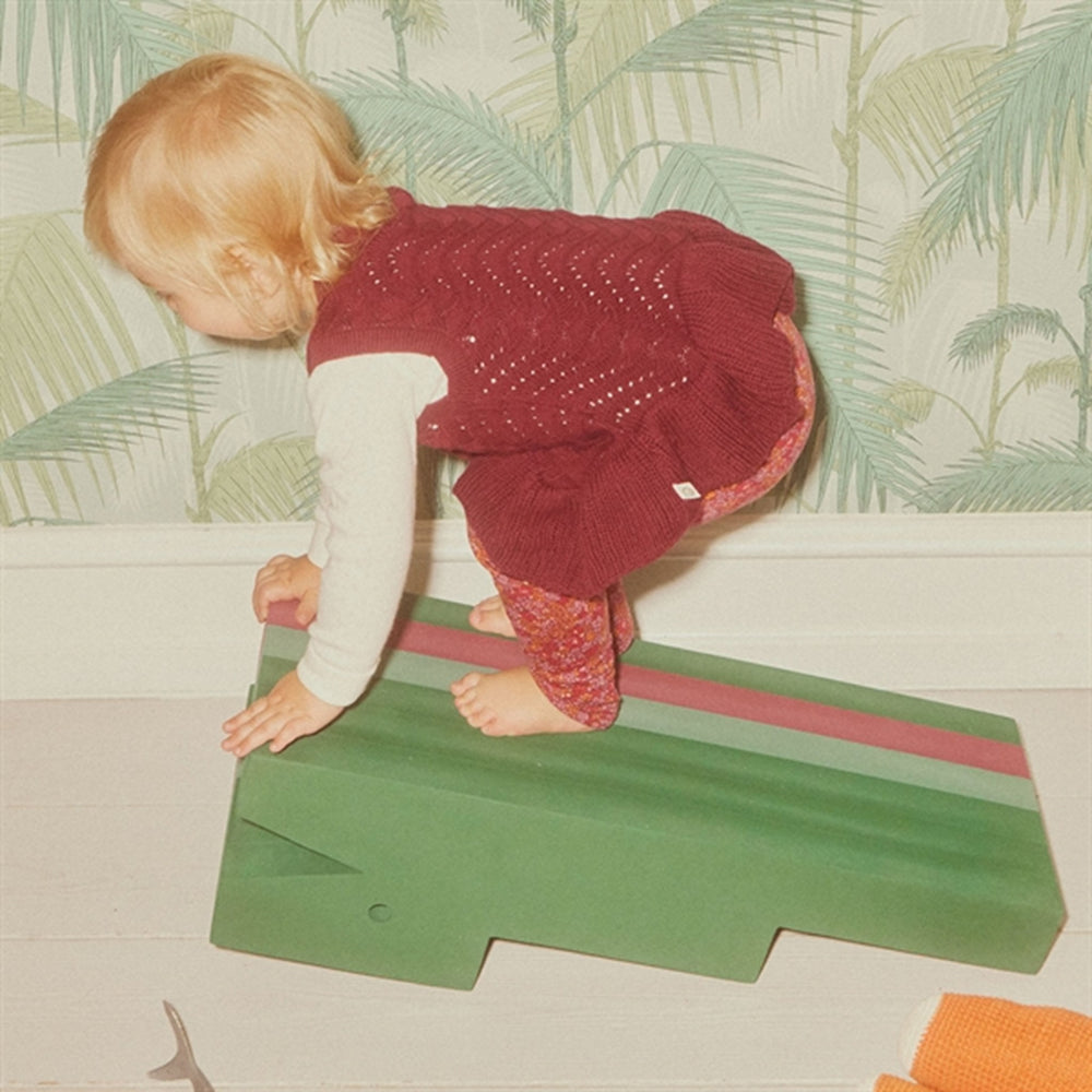 Med sin levande gröna färg och interaktiva form stimulerar denna krokodil både barnets fantasi och motoriska utveckling. Leksaken är speciellt anpassad för barn från 0 till 4 år, vilket gör den till en perfekt start för de allra yngsta. Krokodilens yta uppmuntrar till olika lekar som klättring, balansering och koordinationsövningar, vilket hjälper till att utveckla grundläggande fysiska färdigheter på ett naturligt sätt.