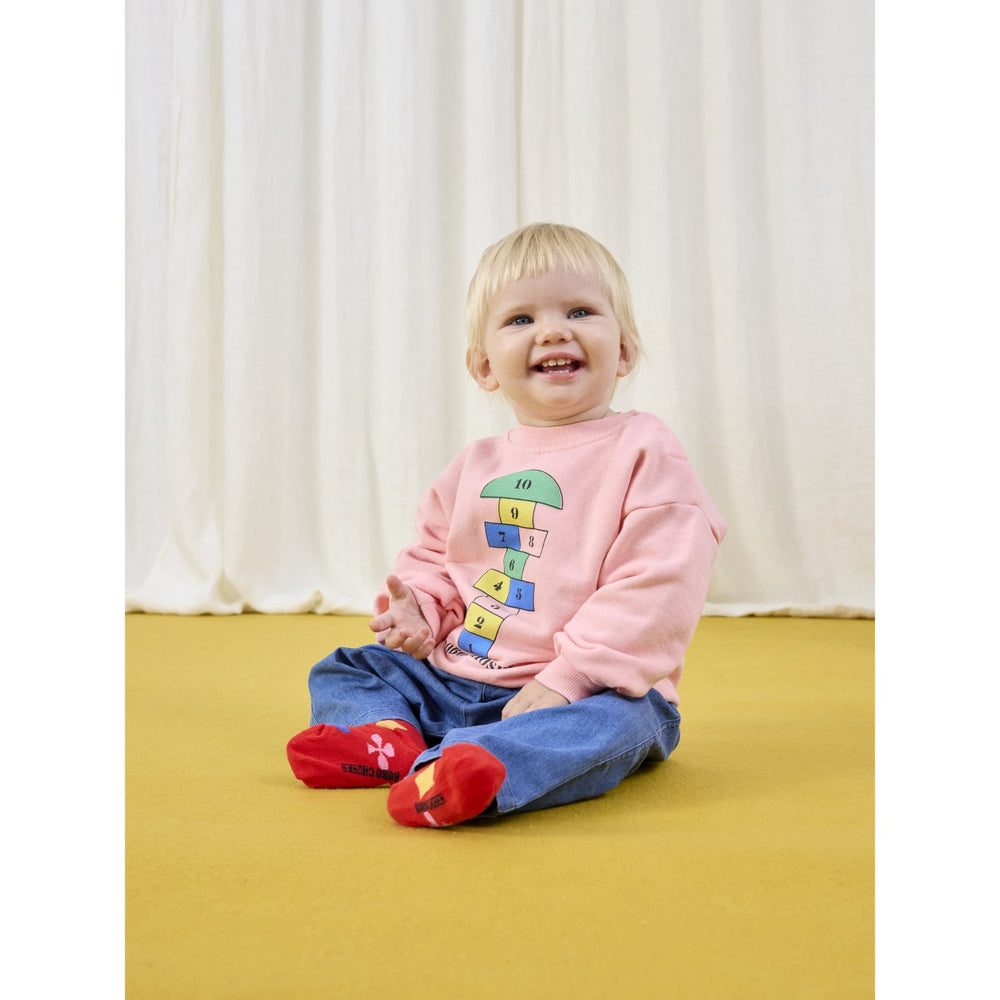 Upptäck våra charmiga och bekväma Bobo Choses ljusdenimbyxor i marinblått med unikt "Roll The Dice"-mönster. Framtagna i högkvalitativt material, dessa byxor kombinerar stil med funktionalitet. Perfekta för lek och vardagens äventyr, med en passform som är både bekväm och trendig. Tvättas enkelt i maskin, vilket gör dem idealiska för småbarnslivets utmaningar.