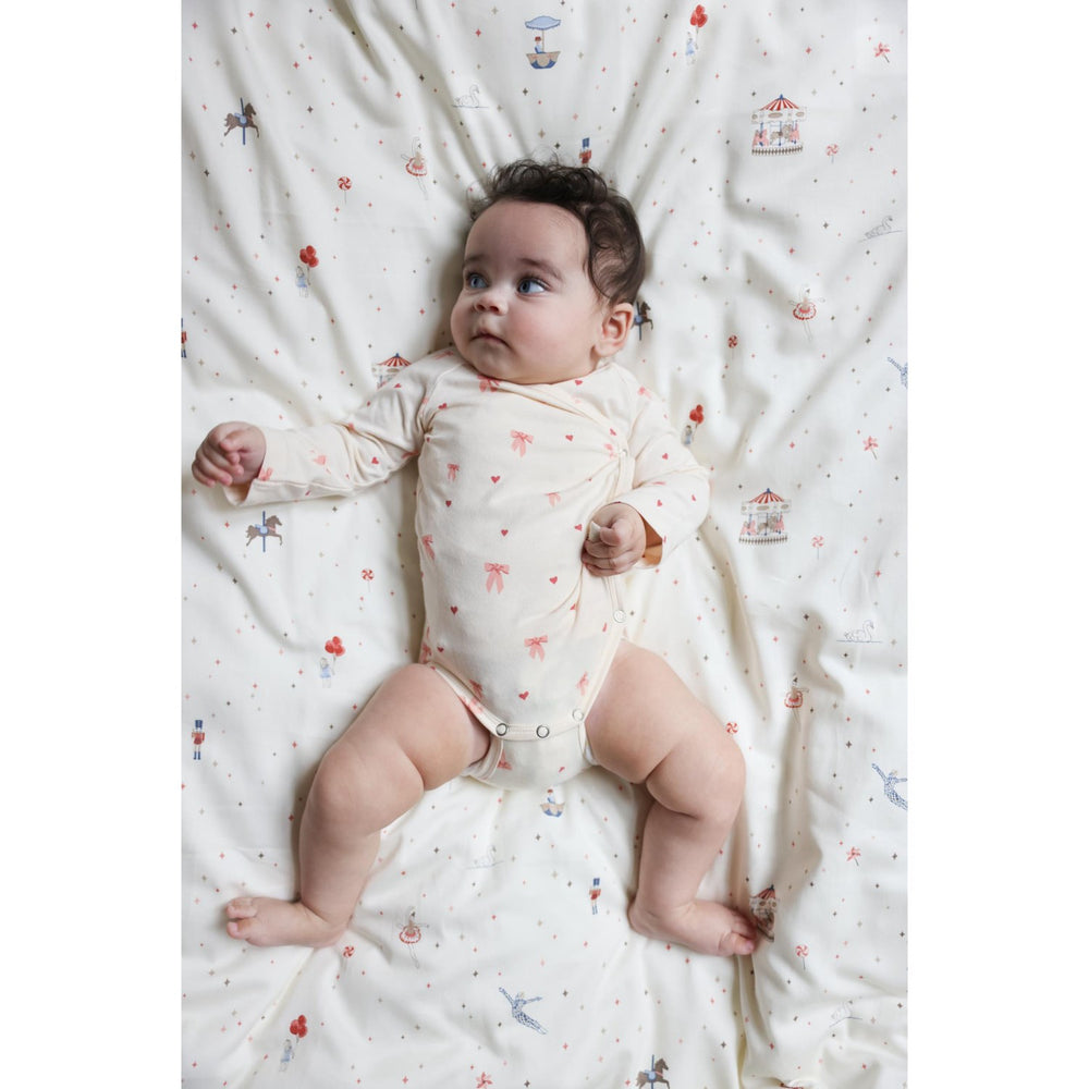 Upplev gosigheten med Cam Cam Copenhagens Bows Omlott Body Milla, en kroppsstrumpa i 100% ekologisk bomull som är skonsam mot barnets hud. Den smarta omlottdesignen med sidöppning förenklar klädbyten, vilket gör denna body både praktisk och bekväm. Tillverkad med en bedårande rosett-design i mjuka färger, passar denna body perfekt för både vardagslek och festliga tillfällen. Perfekt som gåva till nya föräldrar!