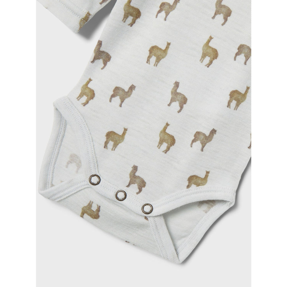 Ge ditt barn den ultimata komforten med Lil'Atelier Gray Dawn Lama Nbmnoel Nor Ull Ls Slim Body. Denna bodysuit är gjord av högkvalitativ ull som håller ditt barn varmt på vintern och svalt på sommaren tack vare dess termiska egenskaper. Dessutom är ull mjukt mot huden och låter den andas, vilket är idealiskt för barnets känsliga hud. Med en rund hals, långa ärmar och praktisk knäppning med tryckknapp är denna bodysuit inte bara funktionell utan även stilfull med sitt charmiga upprepade mönster. Perfekt för alla tillfällen, både för lek och vila.