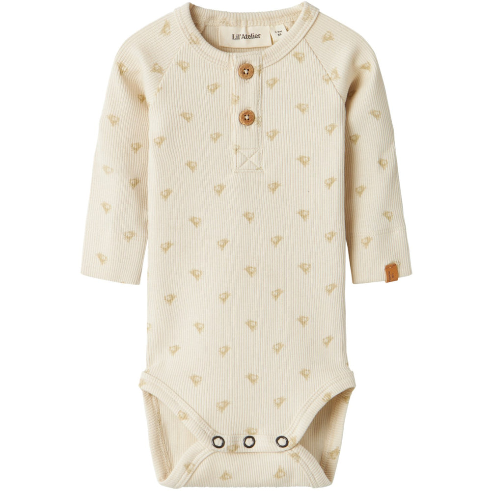 Uppdatera din lilla ängels garderob med Lil'Atelier Turtledove Nbmgago Kip Ls Slim Body, en stilig bodysuit som kombinerar komfort och modern design. Tillverkad i mjuk jersey som är både lätt och stretchig, erbjuder denna bodysuit en mjuk känsla som ger bebisen rörelsefrihet under lek och vila. Modellen har en rund hals och långa ärmar för full täckning, medan knappfästning och tryckknappar framtill ger praktisk på- och avklädning. Den charmiga utformningen med upprepat mönster över hela ytan tillför en lekfull touch. Ett perfekt val för att hålla din lilla bekväm och trendig under alla deras små äventyr.