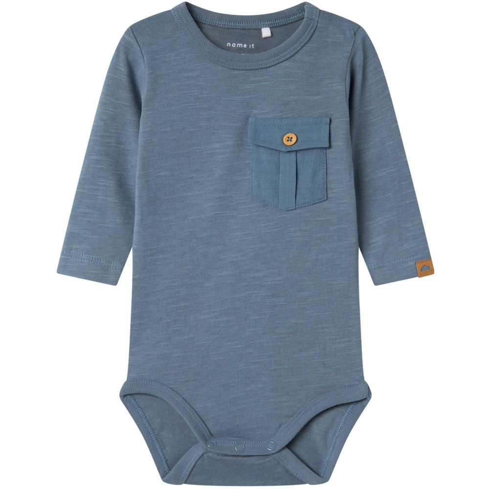 Fräscha upp din lilla ängels garderob med "Name It Blue Mirage Howel Body", en utsökt bodysuit som kombinerar stil med komfort. Tillverkad med tanke på barns känsliga hud, erbjuder denna bodysuit en mjuk och följsam passform, med långa ärmar och rund hals för att hålla ditt barn varmt och bekvämt året om. Utformad med en smidig tryckknappstängning, gör den dagliga på- och avklädningen enklare. Dess charmiga blå färg och diskreta mönster tillsammans med en söt bröstficka adderar en lekfull touch. Ytterligare stilaspekter inkluderar en snygg etikett och dekorativa knappdetaljer. Denna bodysuit passar perfekt till allt från vardagslek till familjesammankomster och är lätt att underhålla genom vanlig maskintvätt.