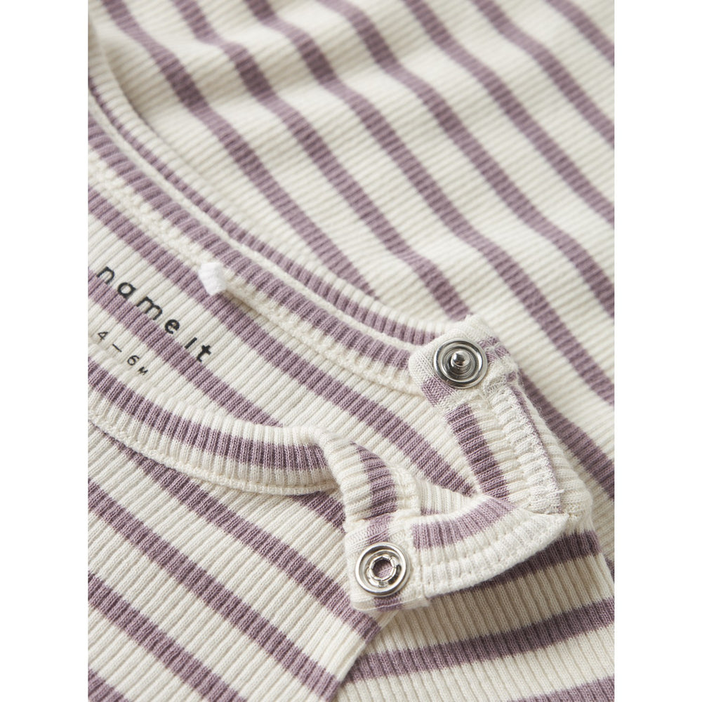 Gör ditt barn redo för dagens äventyr med Name It Elderberry Nbnbani Ls Body Noos. Denna bodysuit kombinerar stil och komfort, idealisk för lekfulla dagar. Tillverkad i ribbstickat material som både är elastiskt och mjukt, erbjuder den en utmärkt passform och rörelsefrihet tack vare dess vertikala, randiga mönster. Med en klassisk O-ringad hals och långa ärmar, har denna body praktiska tryckknappar i grenen för enkel på- och avklädning. Den tidlösa designen och det behagliga snittet garanterar att ditt barn både ser bra ut och känner sig bekväm hela dagen. Vänligen notera säkerhetsinstruktionen och håll plagget borta från eld.