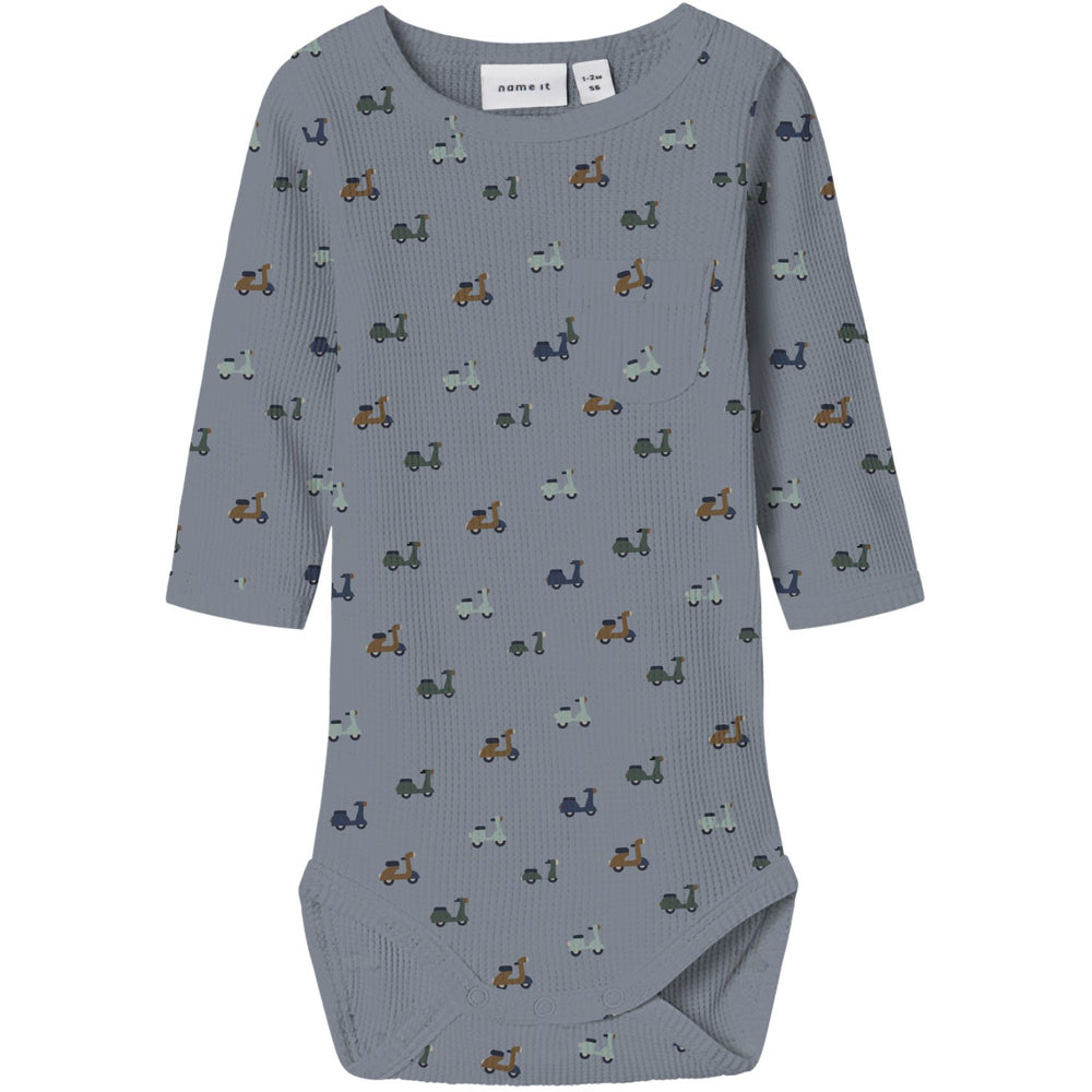 Uppdatera din lilla älsklings klädstil med vår 'Name It Tradewinds Nbmnooter Ls Body'. Denna bodysuit är tillverkad i mjuk våffelstickad textil som inte bara är skön mot huden utan också ger en unik, strukturerad look med små rektanglar över hela ytan. Den klassiska runda halsen och långa ärmar tillför både stil och funktionalitet, perfekt för kyligare dagar. En praktisk framficka och tryckknappar i grenen underlättar vid på- och avklädning. Tack vare bodysuitens design och material är den idealisk för lek såväl som vila, och kan enkelt tvättas. Kom ihåg att förvara bodysuiten långt från eld.