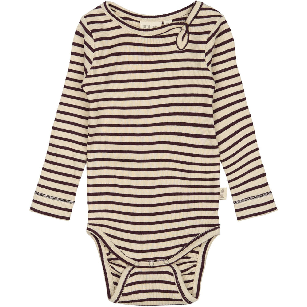 Petit Piao Dark Grape/off White Body L/S Modal Striped