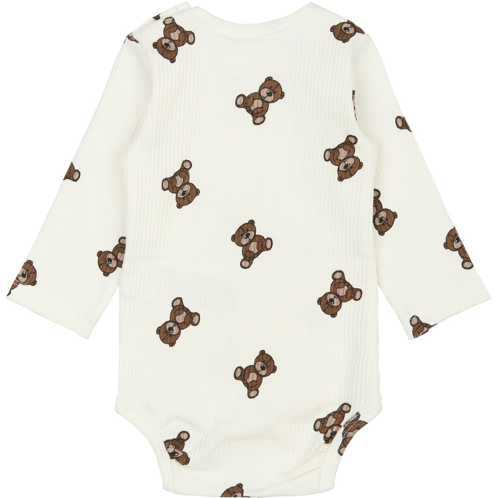 Upptäck charmen med THE NEW Siblings Cloud Dancer AOP TNSBPaulo L_S Rib Body – en långärmad ribbstickad body som förgyller din lilla skatts garderob. Med sitt lekfulla mönster av nallebjörnar blir den snabbt en favorit både för vardagslek och festligare tillfällen. Denna body är tillverkad med omsorg om både stil och komfort, klädd i en mjuk ekologisk bomullscertifierad av GOTS (CU842535), vilket garanterar ett hållbart val för miljön och barnets hud. Passformen är normal med praktiska tryckknappar i grenen och på axeln vilket underlättar påklädningen. Kombinera med matchande TNSBPaulo leggings för ett bedårande ensemble som är lika praktiskt som det är sött. Utnyttja denna kombination av stil och funktionalitet för att ge ditt barn det bästa, varje dag. Material: 95% Bomull Ekologisk GOTS, 5% Elastan Certifieringar: GOTS - Ekologisk