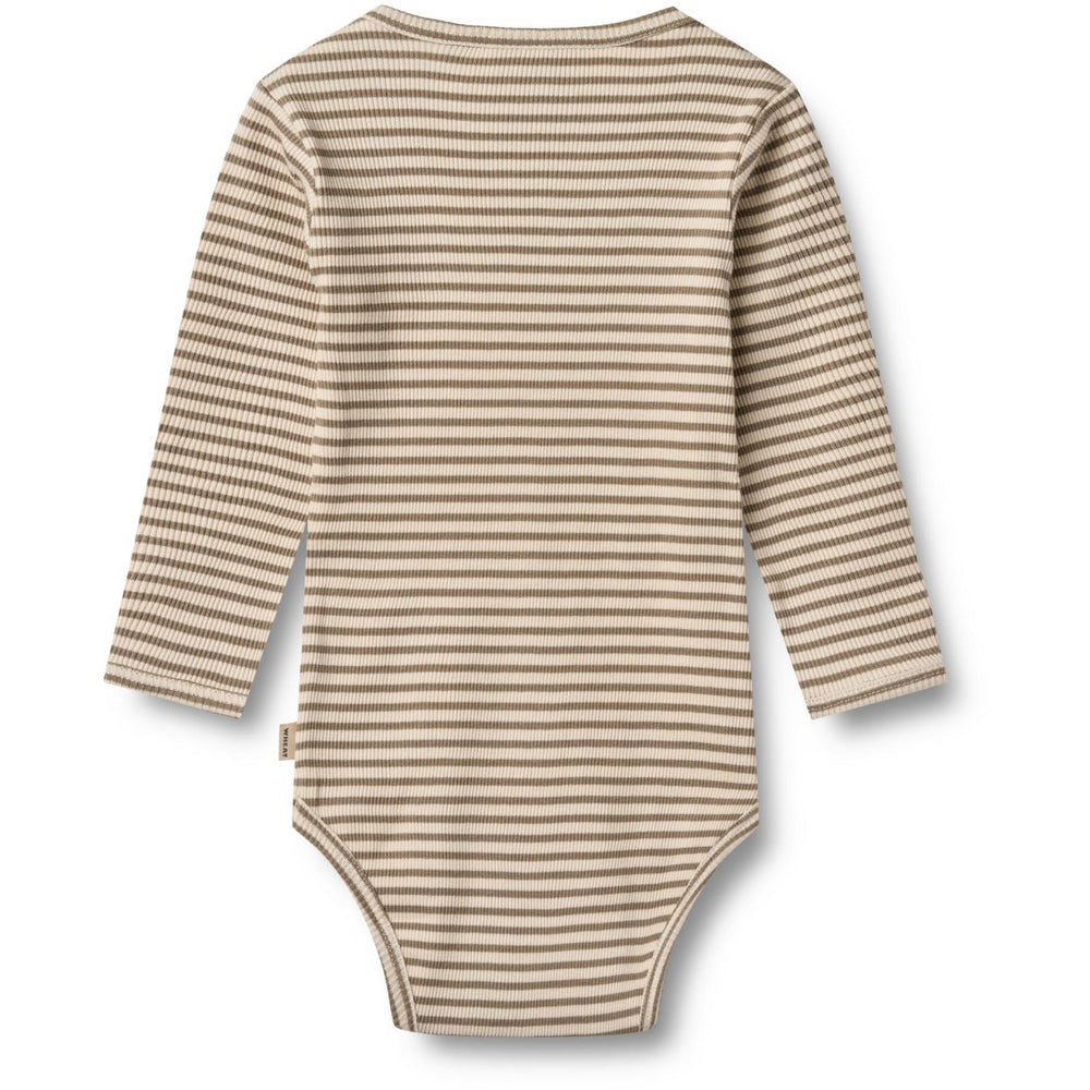 Den bekväma passformen och de smarta funktionerna gör den här bodyn till ett idealiskt val för vardagsbruk, där komfort och stil går hand i hand. Med sin fina blandning av funktionalitet och charmigt utseende är Wheat Stone Stripe Body L/S Berti ett självklart val för ditt barns klädrepertoar.
