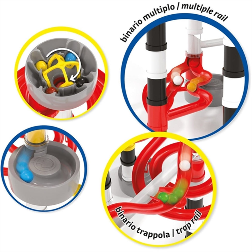 Upptäck glädjen och spänningen med Quercetti Migoga Race Kulbana, en perfekt leksak designad för att underhålla och utbilda barn samtidigt. Denna färgglada och dynamiska bollbana är framtagen för att vara både säker och pedagogisk för barn från 4 år och uppåt.