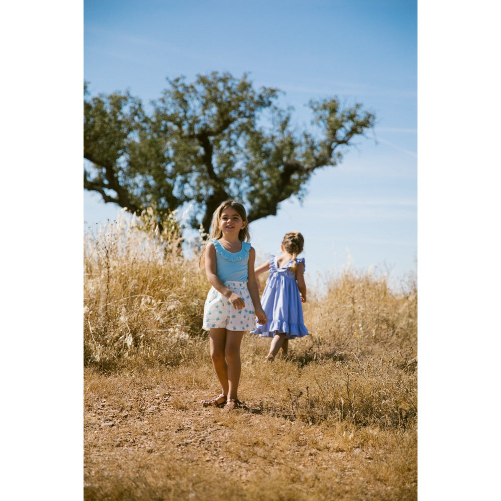 Upplev sommarens glädje med MarMar Poplin Summer Bouquet Pina Shorts. Dessa charmiga shorts är perfekta för lekfulla dagar, tack vare deras luftiga, lösa passform och bekväma resår i midjan. Tillverkade i mjukt poplinmaterial, pryds de av ett färgglatt blommönster som ger en lekfull touch till barnens garderob. Det dekorativa bandet vid midjan är inte bara stiligt, utan också praktiskt för att anpassa passformen. Idealisk för både fest och lek i parken, dessa shorts kombinerar stil med komfort och gör varje dag lite roligare.