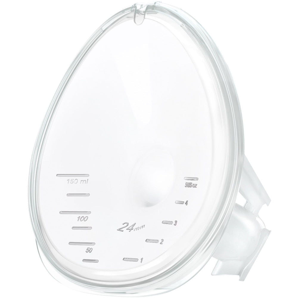 Den innovativa designen med en 105° öppningsvinkel minskar tryck mot bröstet, vilket optimerar komforten under pumpning. Tillverkade i livsmedelssäker plast utan BPA, naturgummilatex och ftalater, garanterar de säkerhet både för mor och barn. Dess bredare nedre halva ger ytterligare stöd för mjölkproducerande vävnader, vilket bidrar till en smidig amningsupplevelse.
