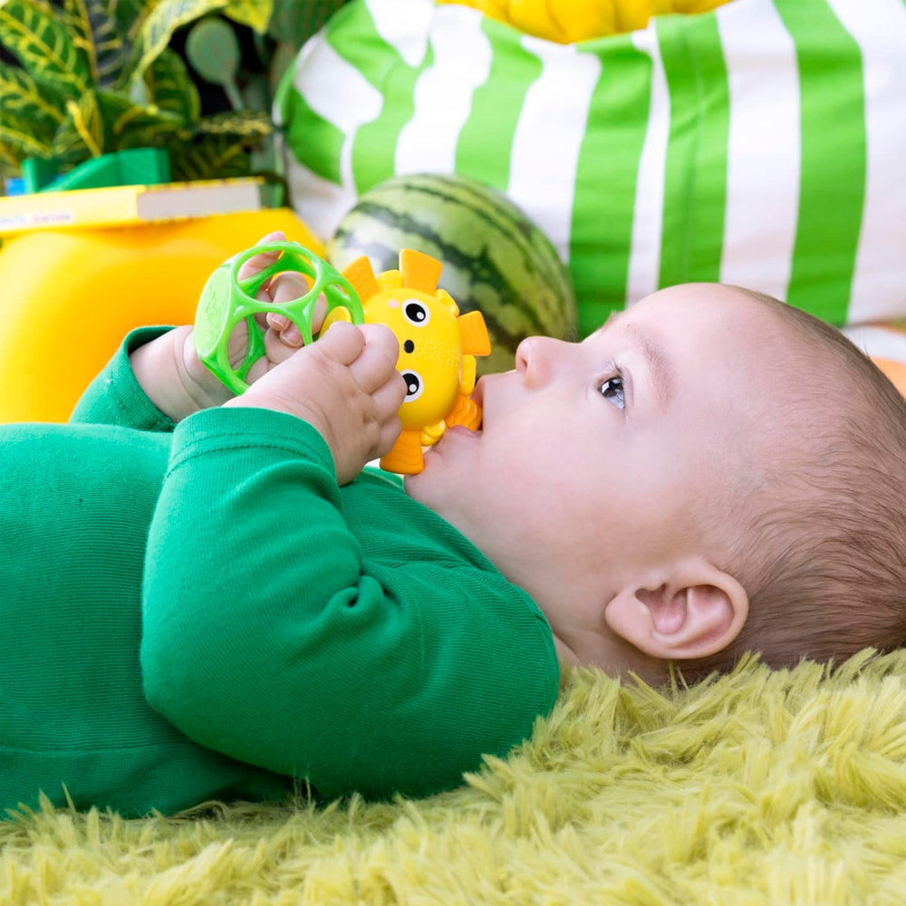 Upptäck en värld av lekfull lindring med Bright Starts Oball-bidering i en fantastisk 2-pack med ett lejon och en elefant. Dessa charmiga bitringar är designade för att försiktigt massera ditt barns ömt tandkött under tandsprickningsperioden. De är tillverkade med den innovativa Oball-tekniken, vilket innebär att de är extremt flexibla och hållbara samt enkla för små händer att greppa och utforska.