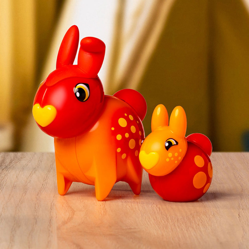 Zinnia, med sin livfulla röda och orange färgskala, är utrustad med en magisk magnetisk näsa som inte bara hjälper henne att samla blommor, blad och bär, men även att interagera med sin vän Peach. Denna magnetiska funktion ökar interaktiviteten och stärker barnets motoriska färdigheter samt förståelsen för orsak och verkan. Peach, å sin sida, kompletterar leken med Zinnia och bidrar till att förstärka den sociala interaktionen när de gemensamt utforskar sin omgivning.
