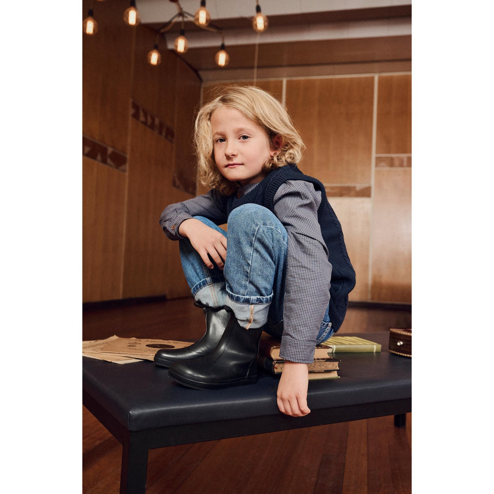 Upptäck Bundgaard Black Rain gummistövlarna – det perfekta valet för små äventyrare! Dessa stilrena låggummistövlar är framställda av flexibelt naturgummi och designade med barnets komfort i åtanke. Med sitt varma nallefoder och avtagbara ullsula håller de små fötterna varma och sköna, även under kyliga dagar. Den ultralätta och mjuka konstruktionen, kombinerat med en bred passform, ger optimal rörelsefrihet och stöd för naturlig fotrörelse. Ingen häldropp på den platta sulan bidrar till barnets stabilitet och balans. Dessutom är Rain helt fria från PVC, PFAS och andra skadliga ämnen, vilket gör dem till ett tryggt val för ditt barns många utomhuslekar. Ett klassiskt, men samtidigt modernt, val som passar perfekt för regniga dagars äventyr.