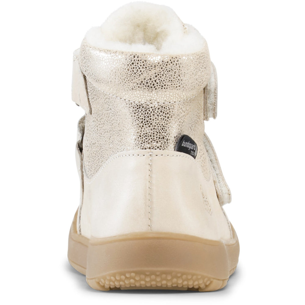 Upptäck våra charmiga Bundgaard Ivory Glitter Siggi vinterkängor, perfekta för de yngsta äventyrarna. Dessa stövlar är tillverkade i mjukt, hållbart läder med snygga mockadetaljer, vilket skapar en varm och ombonad känsla. Den glittrande elfenbensfärgen tillsammans med det eleganta designvalen gör skorna både stiliga och praktiska för alla vinteraktiviteter. Kängorna är speciellt utformade för små barn med full balans och de första stegen, med en bekväm och justerbar passform tack vare smart kardborrestängning.