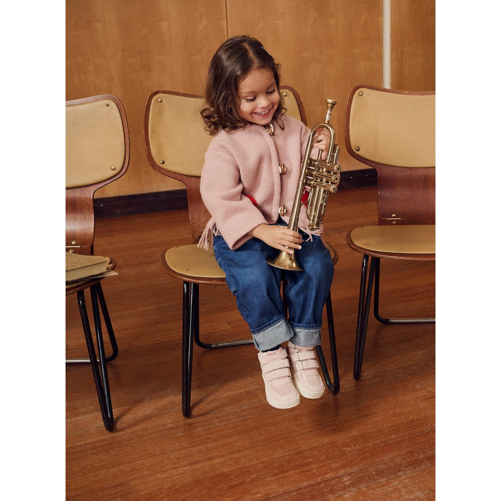 Upptäck Nero – en högklassig sneaker speciellt framtagen för barn som inte kan få nog av äventyr. Tillverkad i en lyxig blandning av ultramjuk mocka och läder, kombinerar denna sko elegans med hållbarhet. Designens sofistikerade mockadetaljer och höga skaft ger både stil och komfort för aktiva barn. Med dess praktiska kardborreknäppning är Nero enkel för små händer att justera och sätta på, medan den platta sulan främjar en naturlig fotposition. Perfekt för lekfulla dagar som kräver både komfort och stil – är Nero det självklara valet för ditt barns fötter.