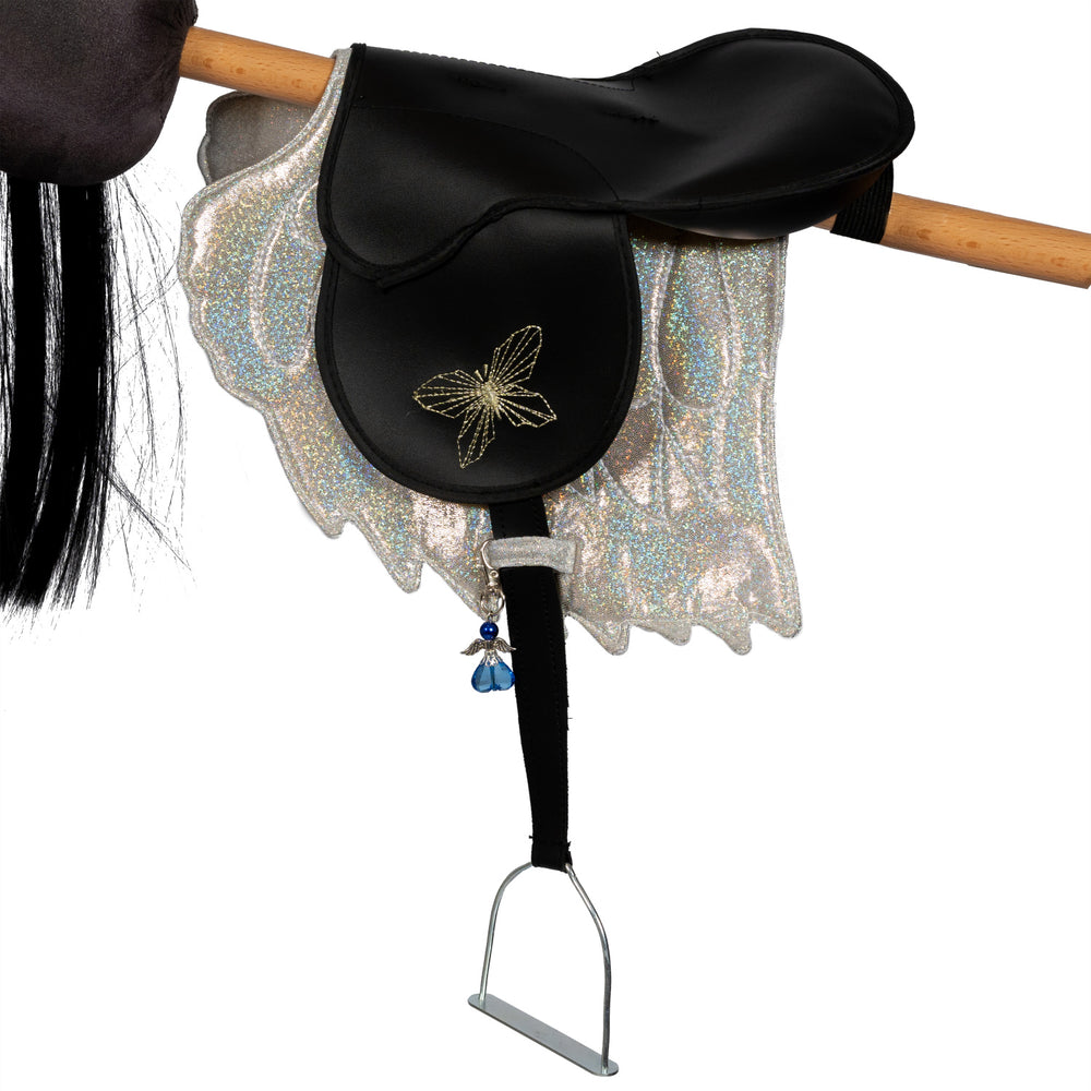 • Setet innehåller ett glittrande schabrak, ett matchande pannband och en fin berlock som kan fästas var som helst på antingen käpphäst eller ryttare
