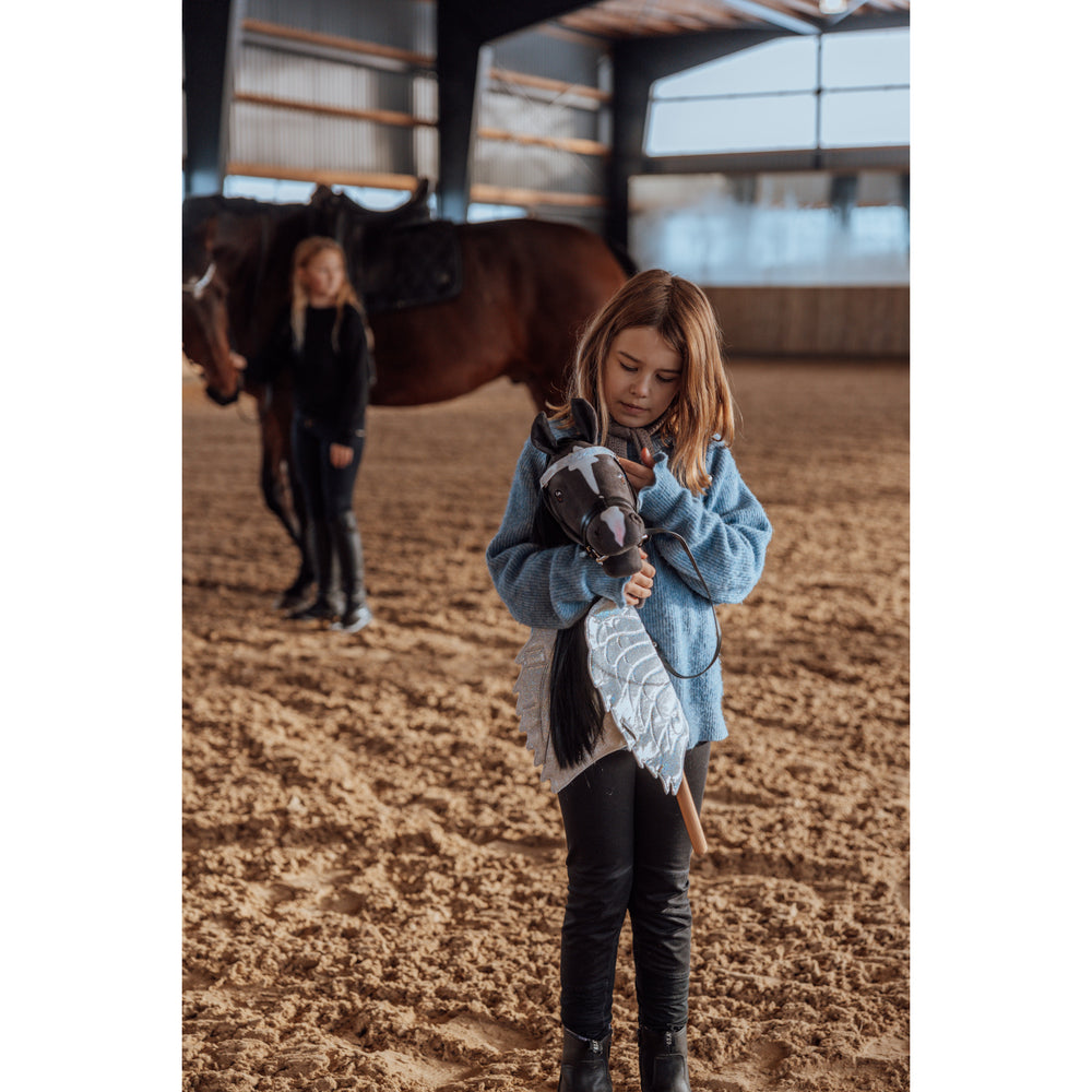 Förvandla lekstunden till en glittrande saga med detta charmiga käpphästset från vårt sortiment! Designat för att sprida magi och fantasi, erbjuder detta set allt som en liten ryttare kan drömma om. Med ett öga för detaljer och barns säkerhet är varje del av setet perfekt samordnad och fri från små lösa delar, vilket gör det till ett säkert val för barn från tre år och uppåt. Innehållande ett glittrande schabrak och ett matchande pannband som båda strålar av kreativitet, är detta set inte bara vackert utan också stimulerande för barnets utveckling. Schabraket, som bär på en design inspirerad av änglar eller enhörningar, inspirerar till fantasilek och kreativ tänkning, deras interaktiva design gör att barnen engagerar sig aktivt i leken. Den medföljande berlocken, som kan fästas på käpphästen eller ryttarens kläder, adderar ett element av överraskning och personlig prägel för barnet. Detta set är dessutom lätt att använda och förvara. De glittrande elementen är designade för att vara hållbara och lätta att rengöra, vilket gör det enkelt för barn att hantera dem själva och för föräldrar att underhålla. Det kompakta formatet säkerställer även att setet enkelt kan tas med på resor eller förvaras utan att ta för mycket plats. Engagera ditt barn i timmar av fantasifull lek med detta betagande och pedagogiska käpphästset. Det är inte bara en leksak, utan en portal till oändliga äventyr och berättelser som väntar på att bli utforskade!