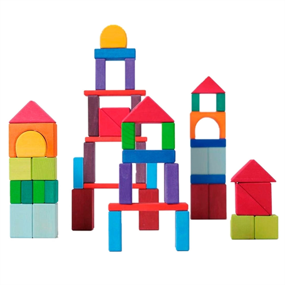 Upptäck spänningen i kreativt byggande med GRIMM'S Klodser 60 Colored Geo-Blocks, perfekt anpassade för små arkitekter och ingenjörer i vardande. Denna färgglada uppsättning innehåller 60 geometriska träblock som är handplockade för att inspirera och utveckla barnets rumsliga tänkande såväl som motorik.