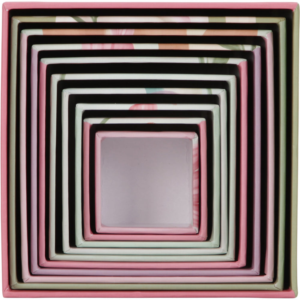 Alla delar är gjorda av slitstark kartong, vilket garanterar produkten en lång livslängd trots dagligt användande. De minsta barnen kommer ha lätt för att hantera och leka med lådorna, och de går från 5 cm upp till 14 cm i storlek. Tack vare det smidiga systemet där lådorna kan placeras i varandra blir förvaring och städning en barnlek.