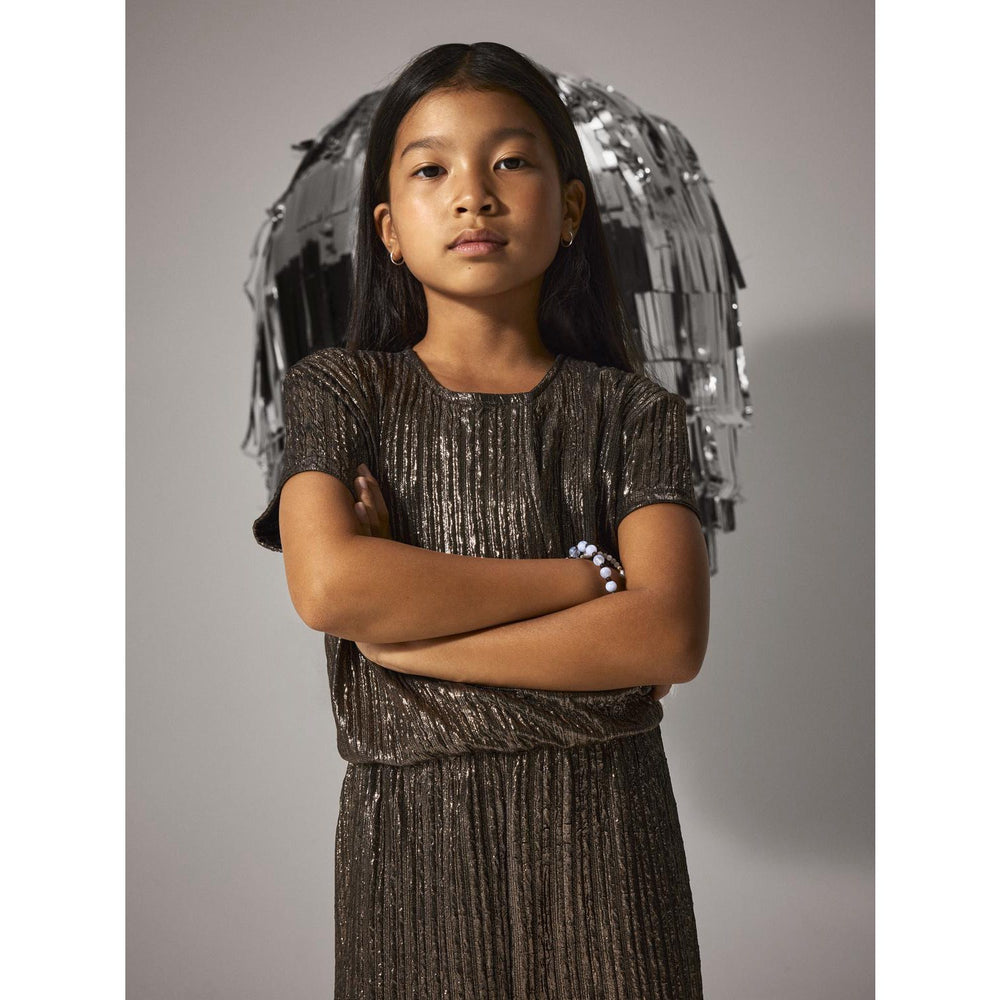 Upptäck vår charmiga Name It Copper Nkfreneing Byxdress, perfekt för den stilmedvetna lilla. Tillverkad i vävt tyg med ett distinkt korsmönster och en lätt texturerad yta, erbjuder denna overall en klassisk estetik med modern twist. Komforten är hög tack vare den praktiska knapplåsningen som underlättar på- och avklädning. Ett iögonfallande glittertryck ger en gnistrande touch som garanterat uppskattas av de små. Overallens sköna passform och härliga design gör den idealisk för allt från lekstunder till finare tillställningar.