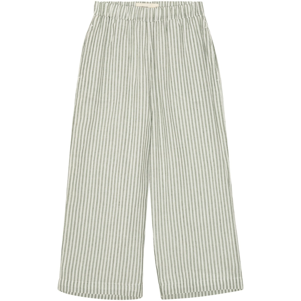 Upplev ultimat komfort och stil med våra "Francis Stripe Byxor" i agavegrön rand från brunobruno nation. Dessa avslappnade byxor med vida ben är tillverkade av ekologisk bomull, vilket gör dem både mjuka och skonsamma mot känslig barnhud. Den rymliga passformen och den rynkade midjan bidrar till en bekväm känsla hela dagen. Dessutom är byxorna helt fodrade med ett tunt lager bomull, vilket ökar deras hållbarhet och komfort. Perfekta för allt från lek till lugna stunder hemma!