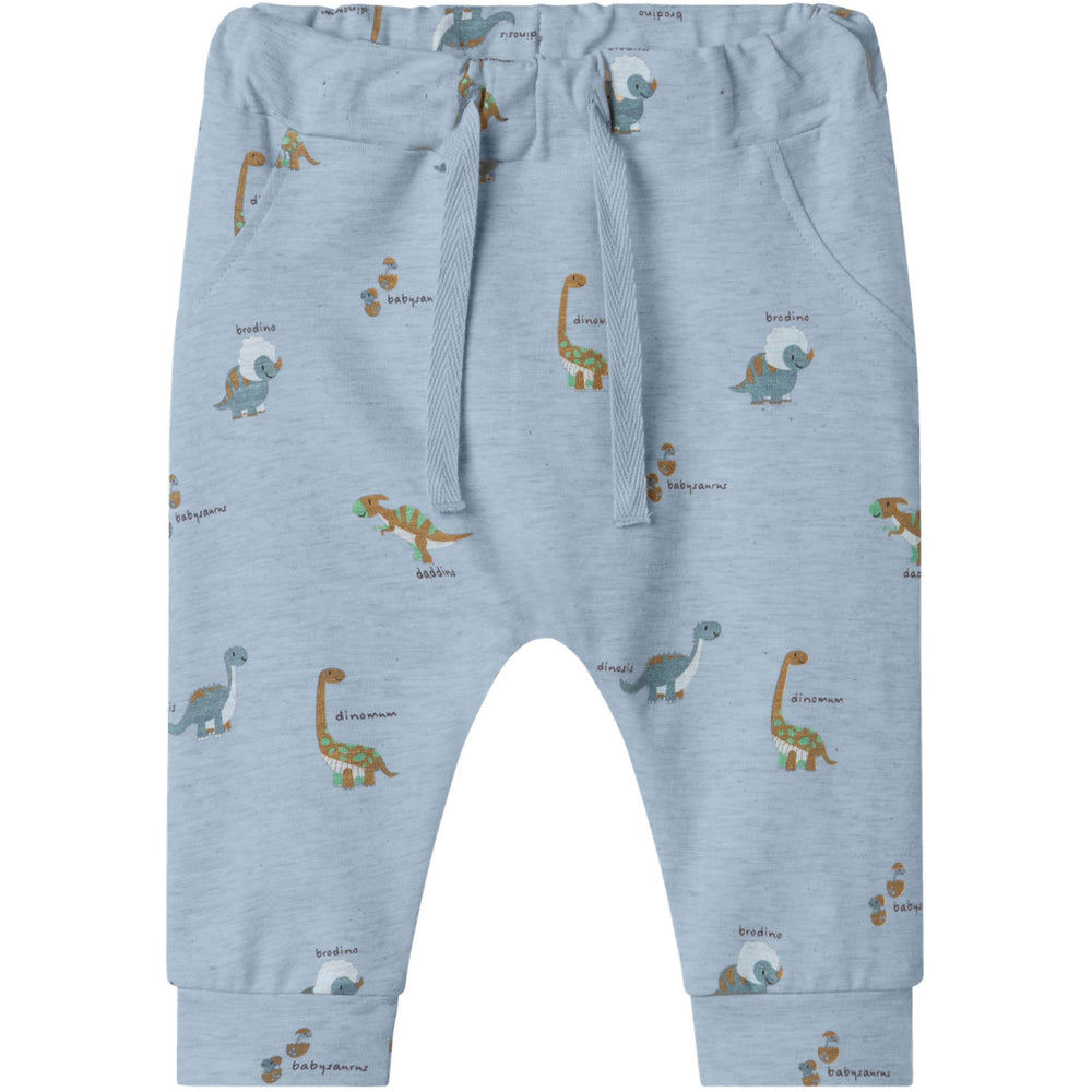 Klä ditt barn i trendiga Name It Celestial Blue Dinos Byxor, designade för både stil och komfort. Dessa byxor är tillverkade av högkvalitativ jersey, vilket garanterar en mjuk och behaglig känsla samt utmärkt rörelsefrihet tack vare tygets stretchighet. Byxorna kännetecknas av sitt lekfulla dinosauriemönster i härlig himmelsblå färg, vilket gör dem till ett roligt inslag i barnets garderob.