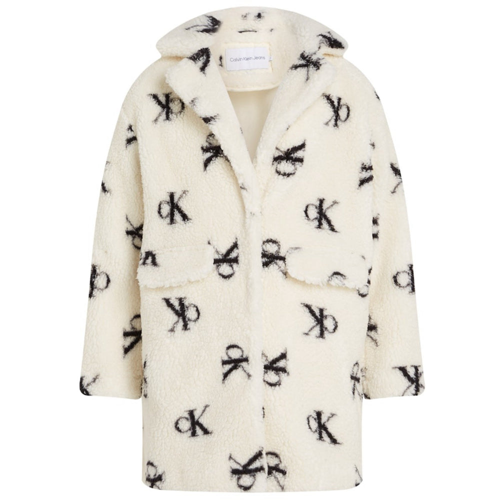 Calvin Klein Monochram Aop Ivory Teddy Aop Coat