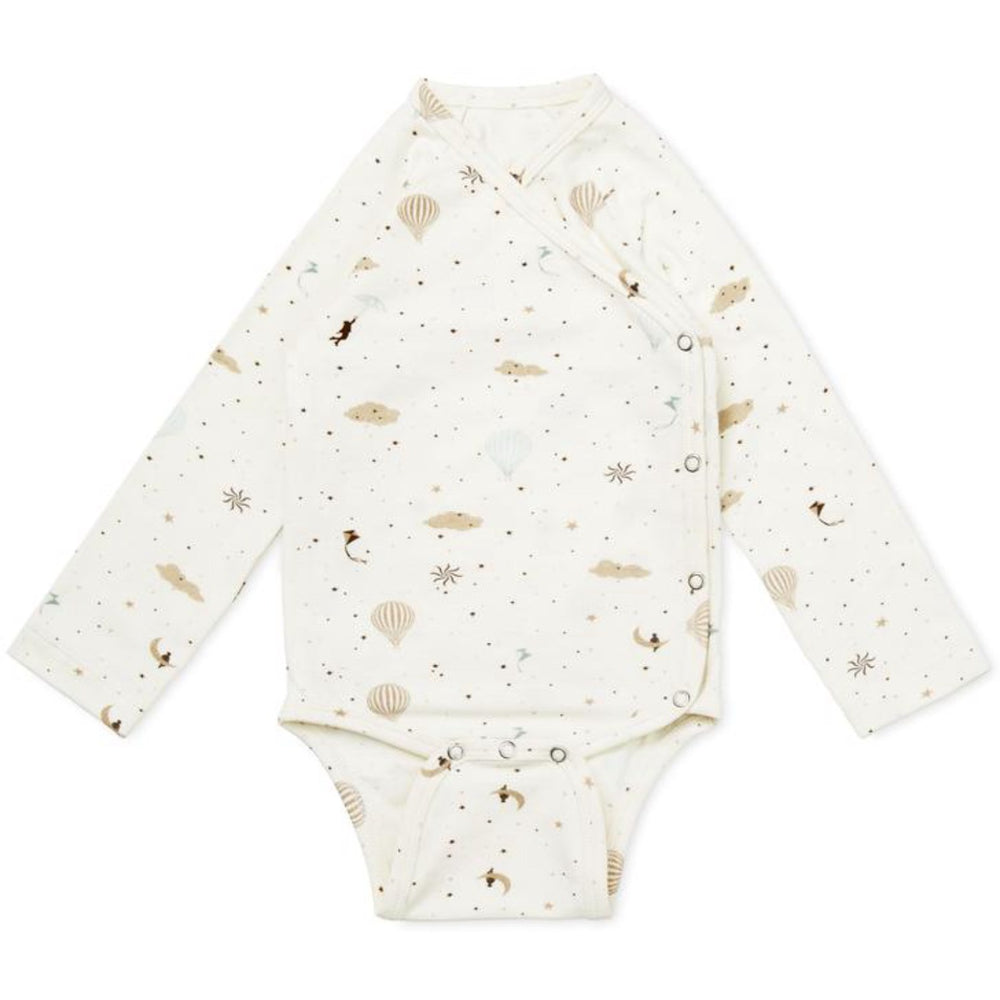 Cam Cam Copenhagens omlottbody 'Milla' kombinerar stil med funktionalitet. Tillverkad i 100% ekologisk bomull är denna bodysuit mycket skonsam mot barnets känsliga hud. Mjukheten och den särskilda omlottstilen, som tillåter bodyn att öppnas helt på ena sidan, förenklar påklädningen och klädbyten. Med sin charmiga design och det drömska Dreamland-mönstret blir 'Milla' både en praktisk och estetisk tillgång i varje barns garderob. Den är idealisk för daglig användning såväl som festligare tillfällen och blir en uppskattad gåva vid babyshower eller som en moderskapspresent.