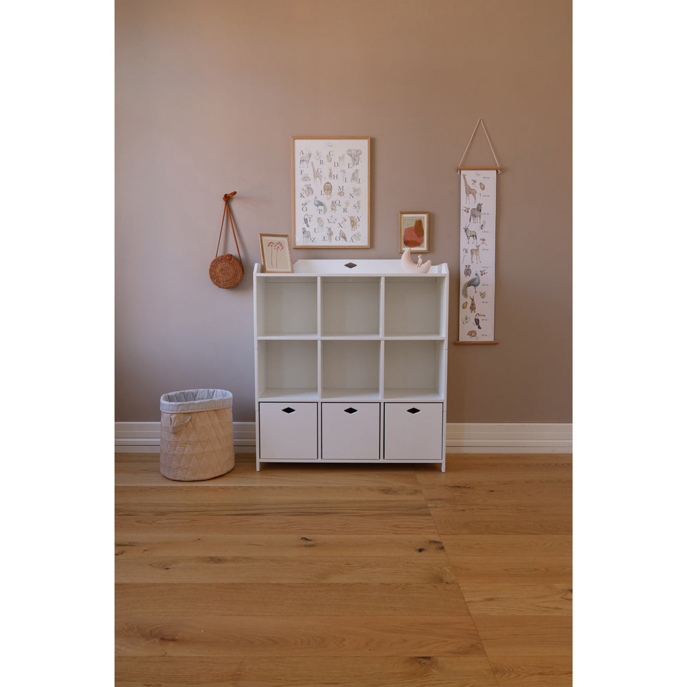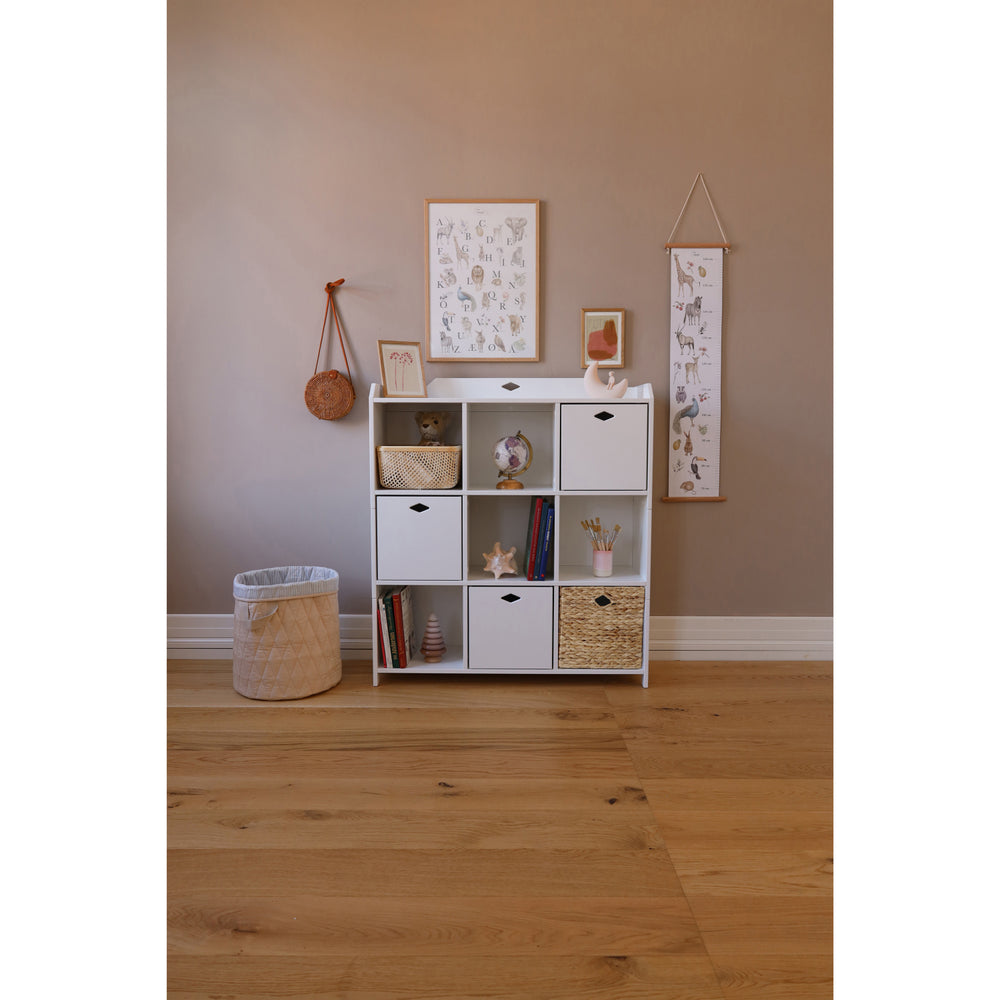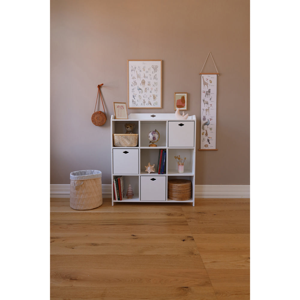 Utöka ditt barns rum med Cam Cam Copenhagen White Luca Förvaring Extra Module: en mångsidig och säker lösning för att hålla ordning på leksaker och kläder. Denna extra modul kopplas enkelt ihop med grundmodulen genom ett säkert låssystem som förhindrar modulerna från att glida eller tippa, vilket gör den till ett stabilt val för barnrummet.