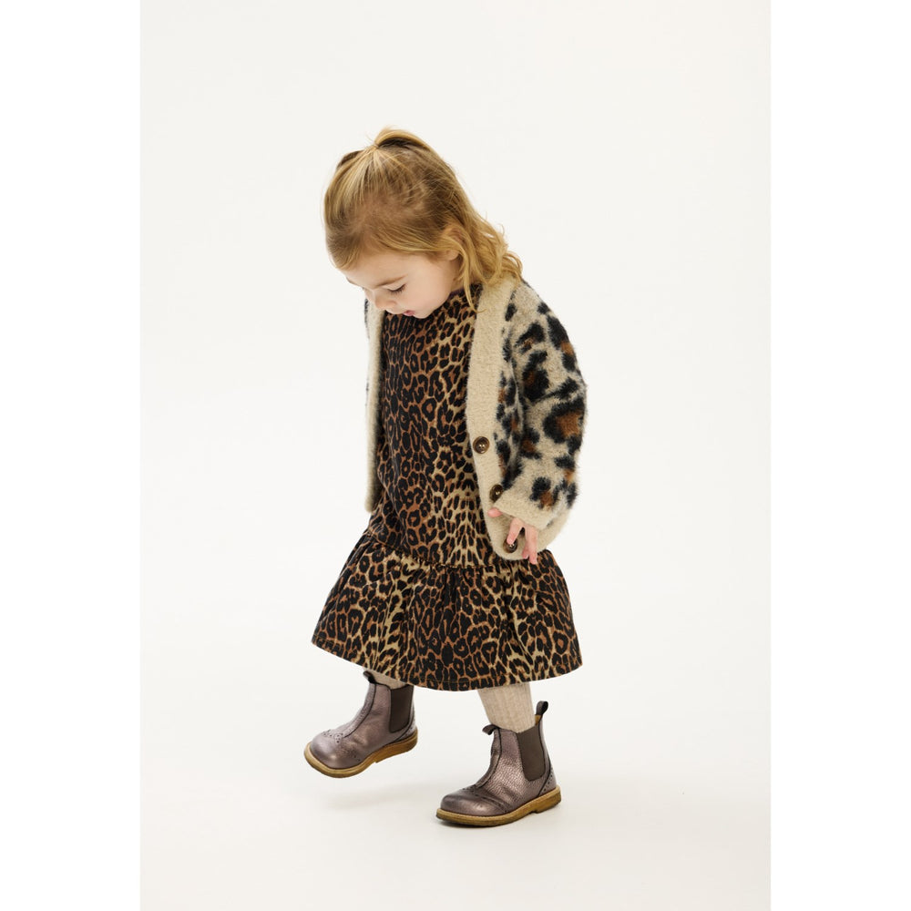 Låt ditt barn uppleva både stil och komfort med THE NEW Siblings Feather Gray AOP Pamela Jacquard Cardigan. Denna charmiga kofta är utformad i en mjuk kvalitet som känns behaglig mot den känsliga barnhuden. Med dess unika och lekfulla leopardmönster sticker den ut samtidigt som den är lätt att matcha med andra plagg. I en ljusgrå färgton med subtila mönsterdetaljer är den en fröjd för ögat. Koftan har en klassisk knappstängning framtill som underlättar på- och avklädning, och är försedd med ribbade kanter vid ärmarna för att säkerställa en god passform som håller sig på plats även under rörelse. En avslappnad passform bidrar till att ditt barn kan röra sig fritt och obesvärat, vilket gör koftan idealisk för allt från skoldagar till lekfulla eftermiddagar i parken. Med denna kofta från THE NEW siblings ger du din lilla en kombination av funktionalitet och flärdfull design, perfekt för att hålla värmen med stil när kyligare dagar nalkas. Den är också enkel att sköta om, vilket gör den till en praktisk samt stilfull del av ditt barns garderob. Uppdatera din lilla äventyrares garderob med denna mångsidiga och attraktiva kofta som passar lika bra till vardags som till fest.