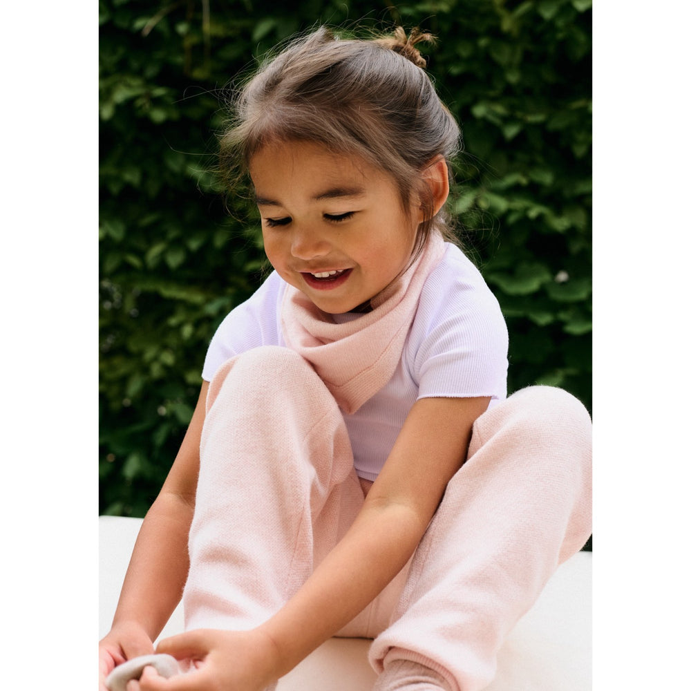 Den neutrala färgen och det diskreta mönstret är designade för att enkelt passa in i barnets garderob. HOLMM Powder Foty Cashmere Halsduk mäter 21 cm i höjd och 70 cm i bredd, vilket gör det lätt att justera och styla på olika sätt.
