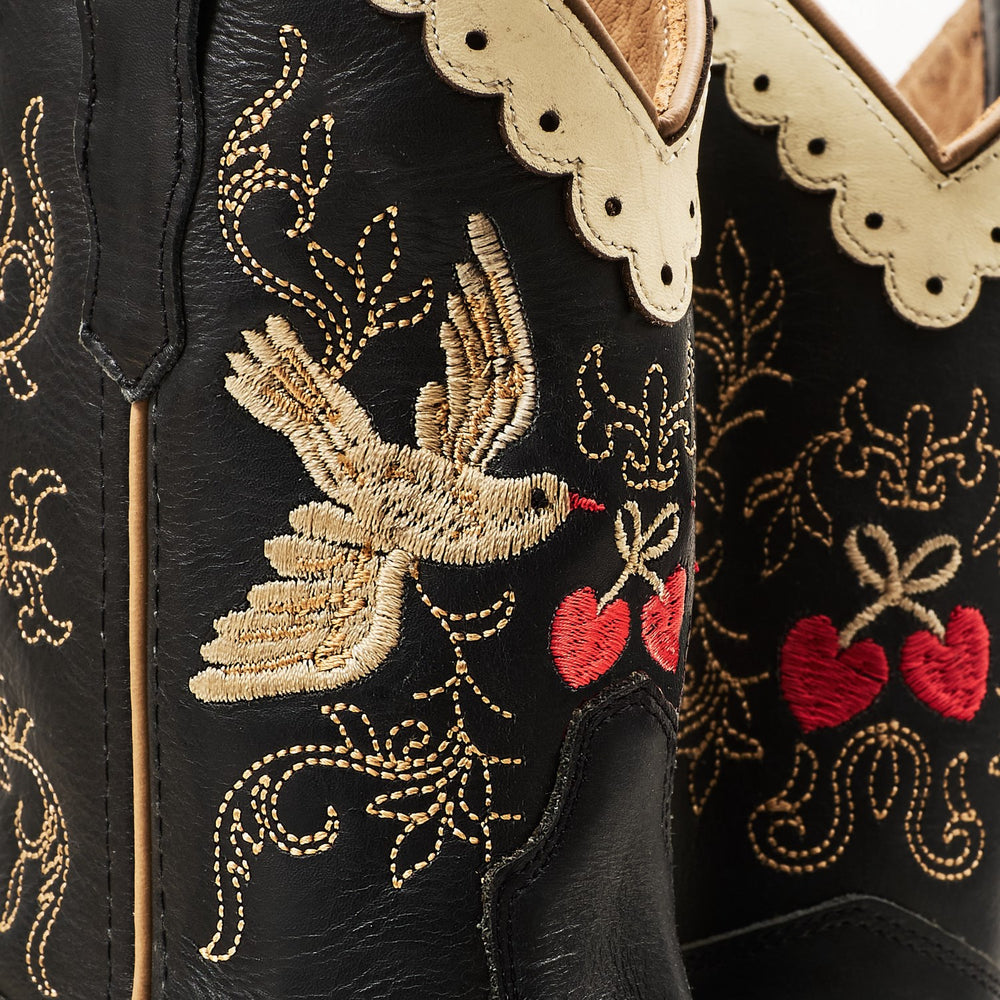 Upptäck våra Limited Cowboy Boots i eleganta Black Dove – perfekta för det stilmedvetna barnet! Dessa exklusiva stövlar är handgjorda i förstklassigt svart läder, dekorerade med snygga sömmar som ger en strömlinjeformad look. Båda robusta och stiliga, dessa boot är inspirerade av klassisk western-mode men med en modern twist. En spännande mix av tradition och trend som gör dem till ett unikt tillskott i barnets garderob.