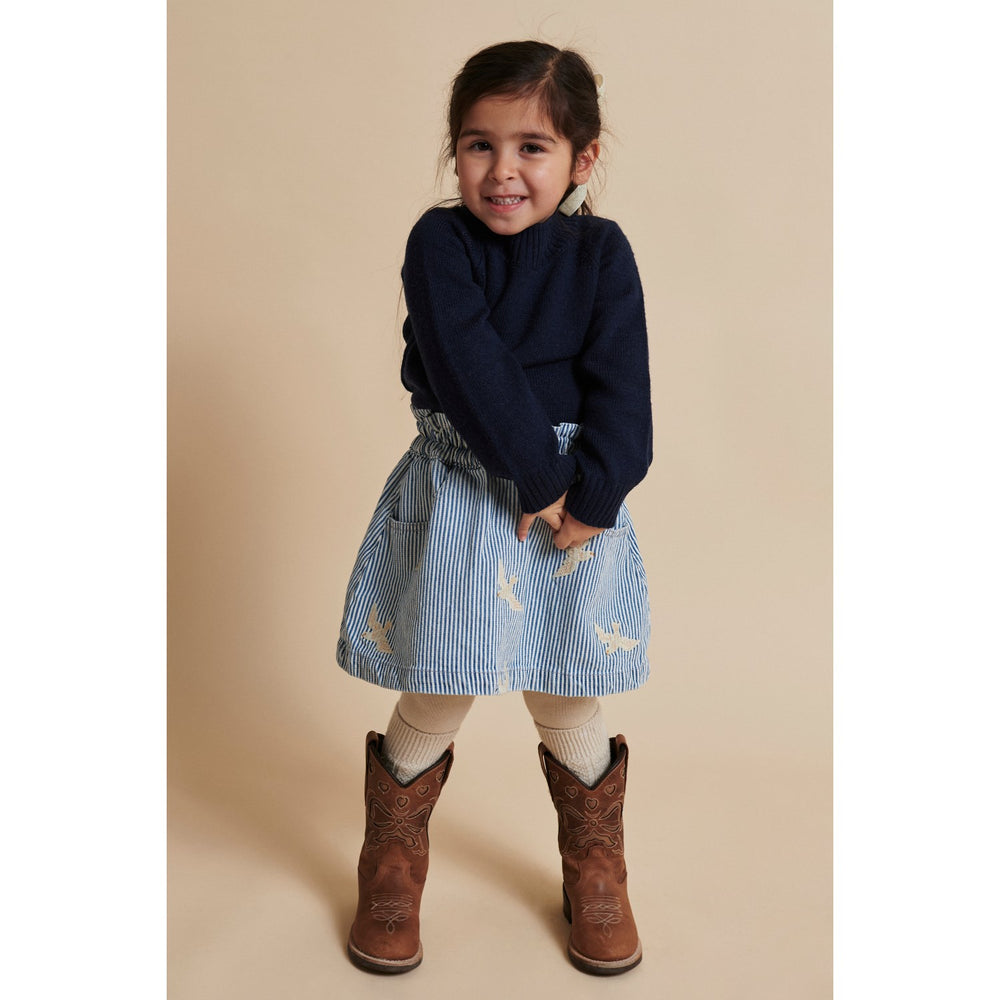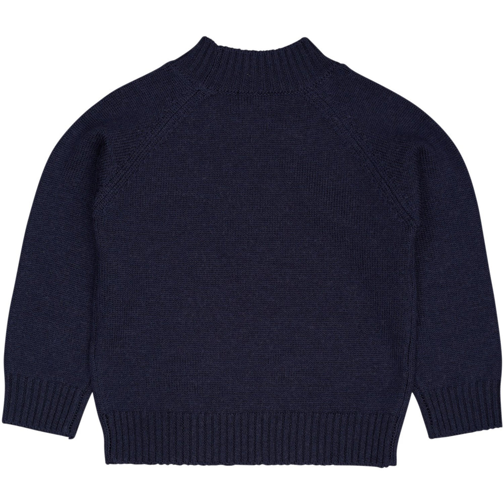 Upplev oöverträffad mysighet med vår "Navy Pull Över W Sköldpadda Neck" från Copenhagen Colors. Denna blus är ett idealt val för kyliga dagar, tack vare dess högklassiga, mjuka och andningsbara stickmaterial. Den höga turtleneck-designen kombinerar både klassisk elegans och modern stil, och dess mörkblå färg med subtila mönster tillför en sofistikerad touch till varje barns garderob.
