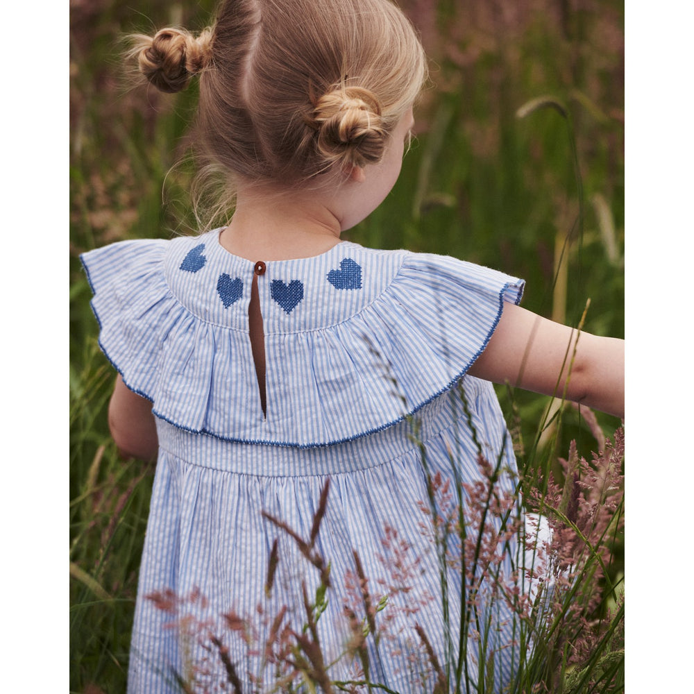 COPENHAGEN COLORS Sky Blue W Cream Stripe W Ocean Blue Seersucker Klänning W. Heart - 62 är restnoterad och kommer att skickas så snart den är tillbaka i lager.