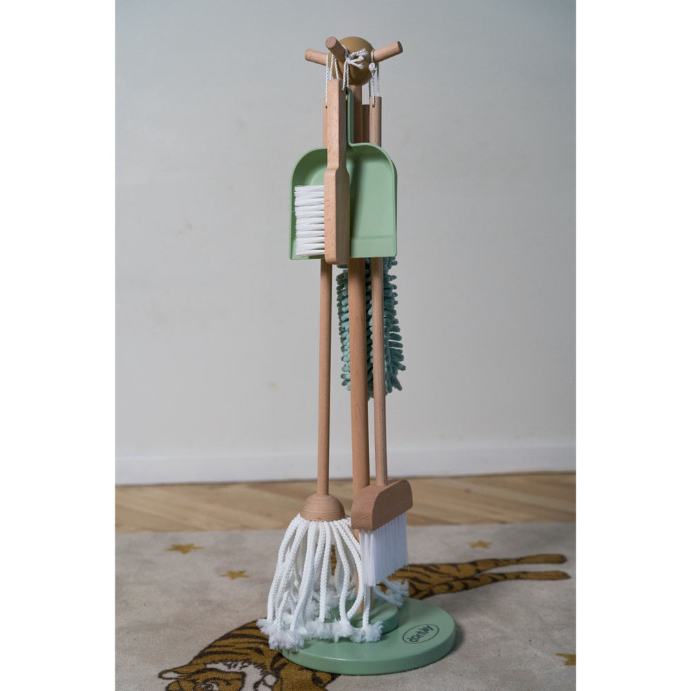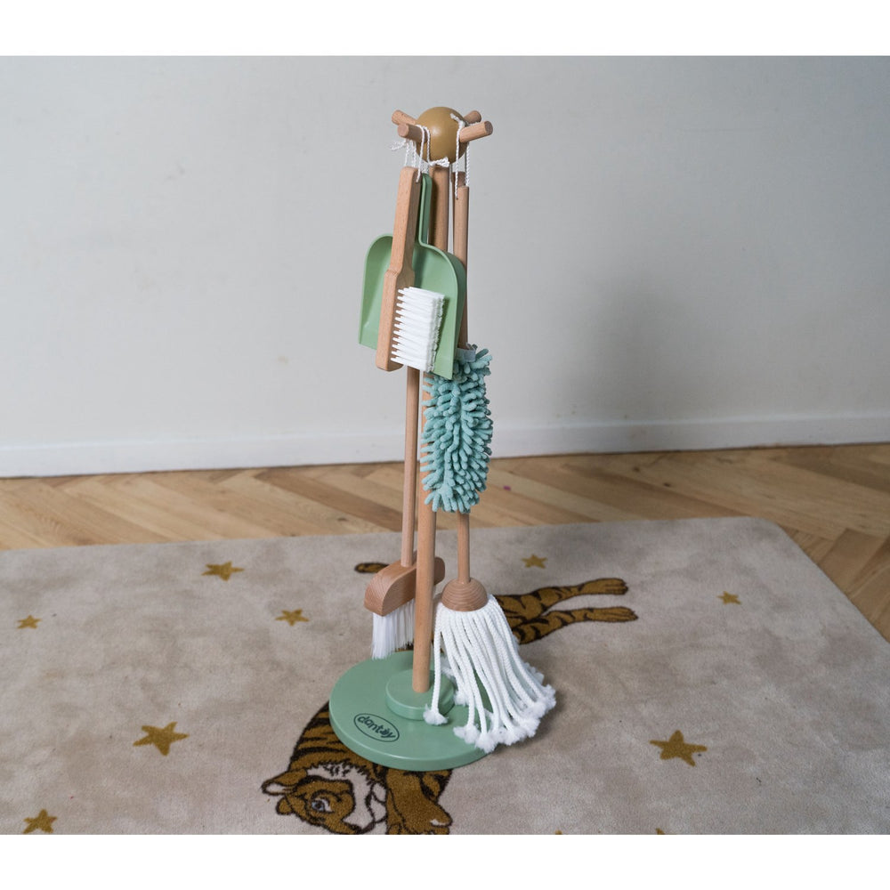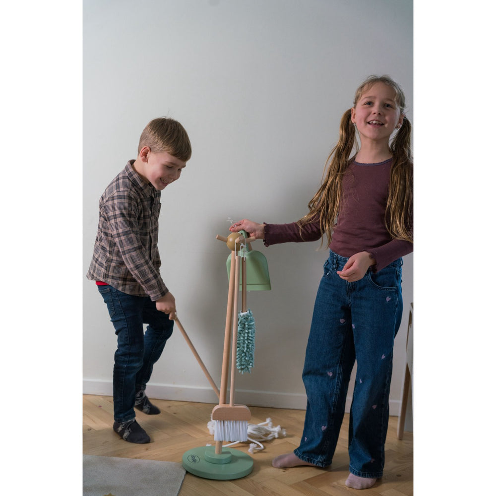 Setet inkluderar sex olika städredskap som hjälper till att utveckla barnets motorik och koordinationsförmåga samtidigt som de introduceras till vardagliga sysslor på ett lekfullt sätt. De säkra och robusta delarna är specifikt anpassade för små händer, vilket garanterar både säkerhet och underhållning.