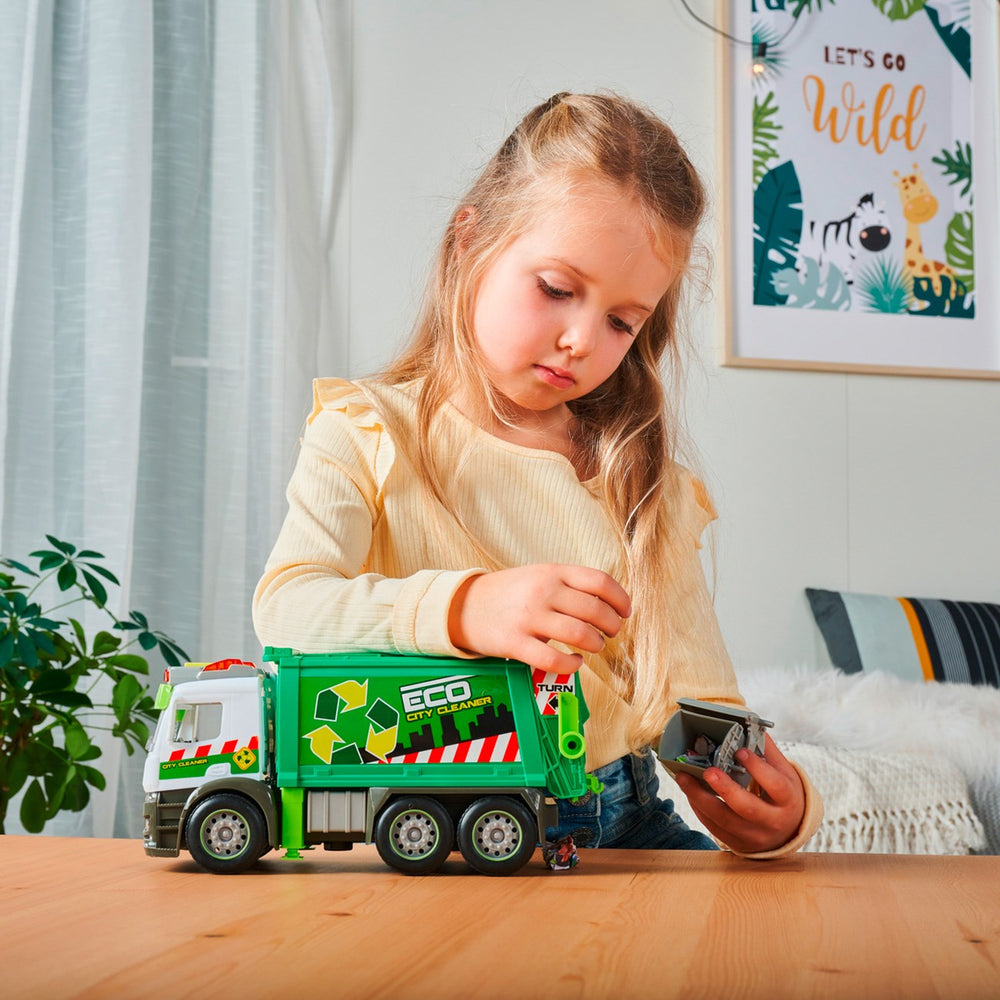 Upptäck hur kul städning kan vara med Dickie Toys Mercedes sopbil! Denna robusta leksaksbil är utformad för att efterlikna en riktig Mercedes sopbil och är perfekt för små händer, med en storlek på 26 cm. Med sin inbyggda friktionsmotor är bilen enkel att köra framåt; dra bara tillbaka den och se den susa iväg! Dessutom är sopbilen utrustad med realistiska ljus- och ljudeffekter som stimulerar både syn och hörsel, samtidigt som de rörliga delarna inklusive en soptunna erbjuder extra interaktivitet och roliga stunder.