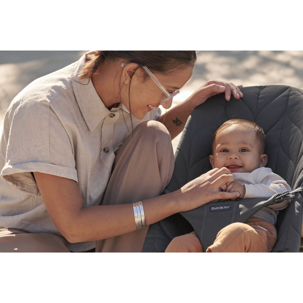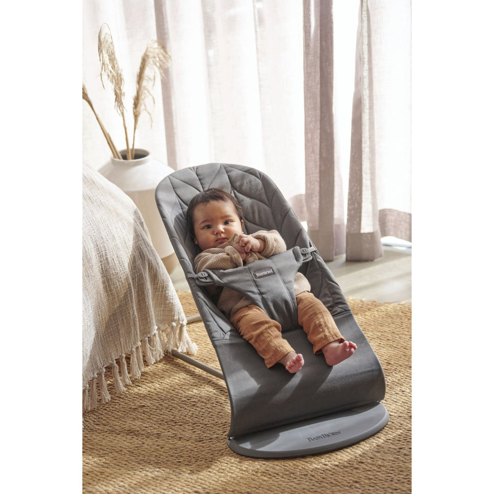 BabyBjörn Anthracite Grey Skråstol Bliss - Vævet, Blomsterbladsquilt