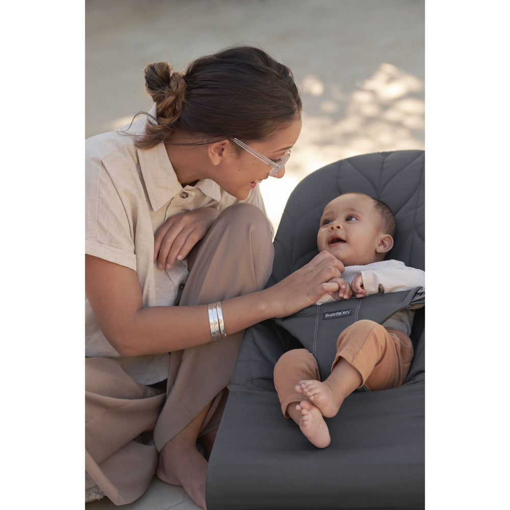 BabyBjörn Anthracite Grey Skråstol Bliss - Vævet, Blomsterbladsquilt är restnoterad och kommer att skickas så snart den är tillbaka i lager.