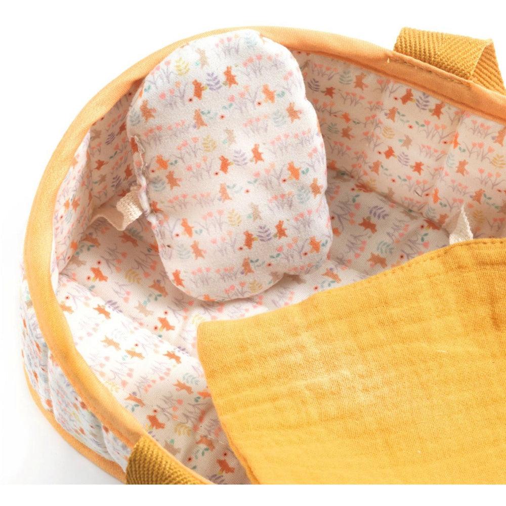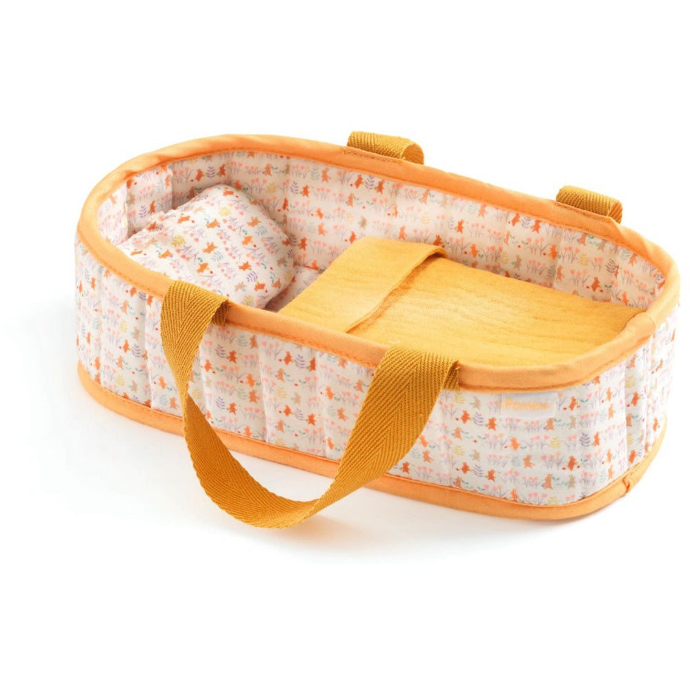 • Innehåller: 1 st 20 cm docka (kropp i mjukt tyg och vinylhuvud, armar och ben), 1 Moses korg, 1 filt, 1 kudde