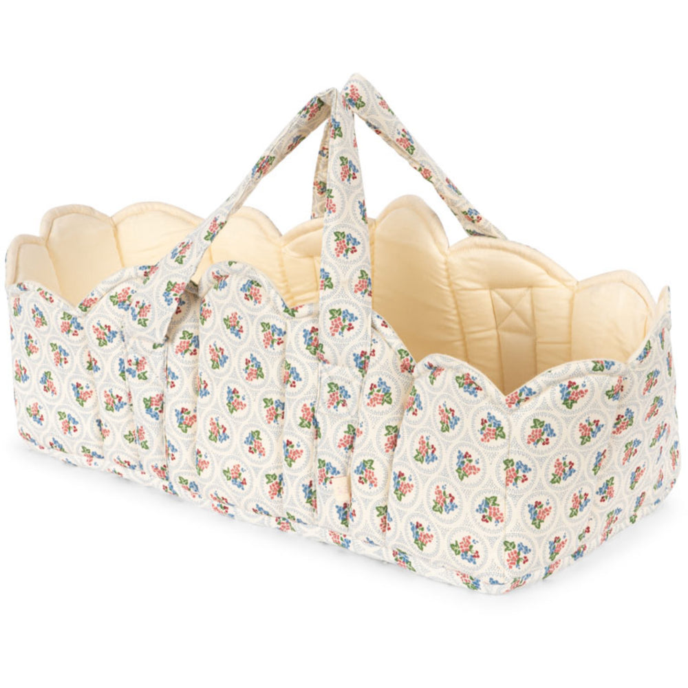 Upptäck förtrollningen med Konges Sløjd Verona Blues Docka Lift – en omsorgsfullt designad dockutrustning som tar lekstunden till nya höjder. Denna vackert vadderade docklyft är utformad för att säkerställa att ditt barns leksaker får en trygg och behaglig färd. Utstyrd med mjuka remmar, eleganta dekorativa passpoaler och charmiga kammusslor, kombinerar den komfort med stil.