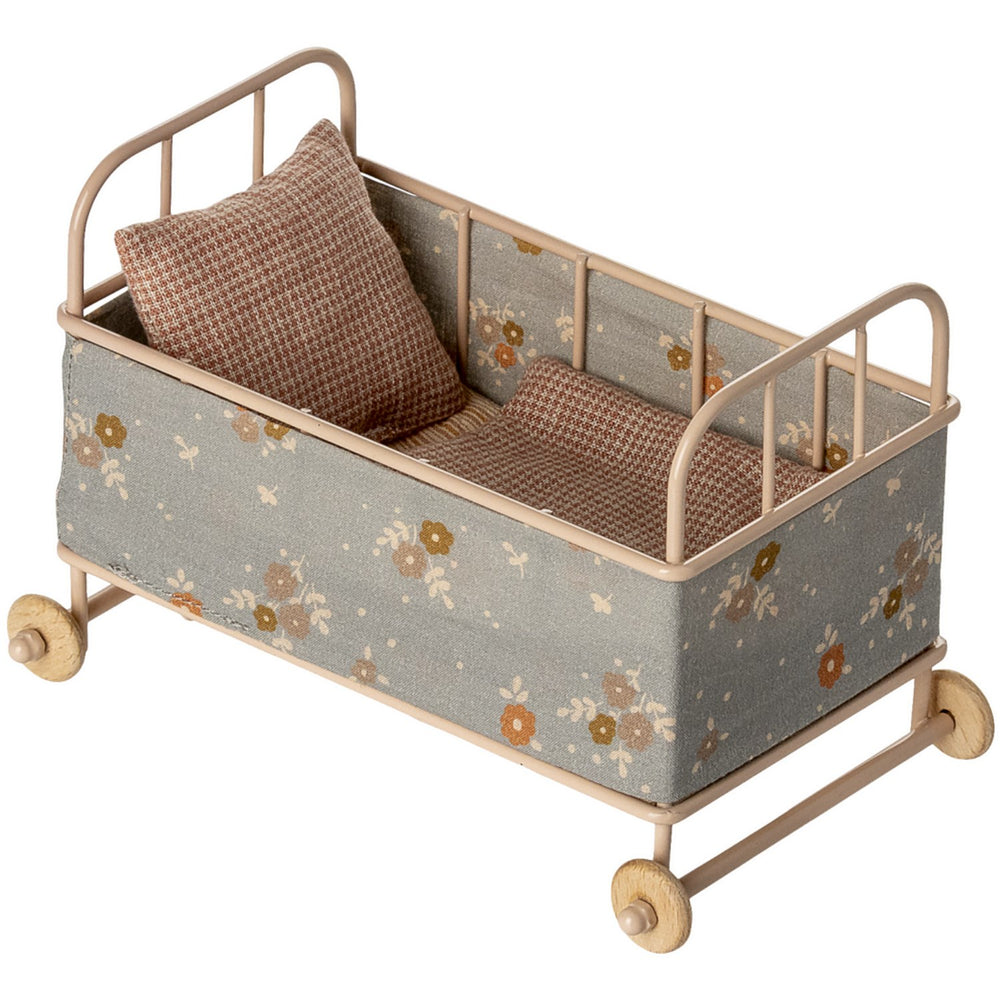 Träffa Maileg Tremmeseng, Micro i pudrig pastell, en underbar dockutrustning som erbjuder mer än bara söta drömmar. Denna charmiga spjälsäng är tillverkad av hållbar metall och är komplett med en mjuk madrass, varm filt samt en bekväm kudde. Den är skräddarsydd för Mailegs mikrostorleks "vänner" och de små läckra mössen, vilket gör den idealisk för barn från tre års ålder.