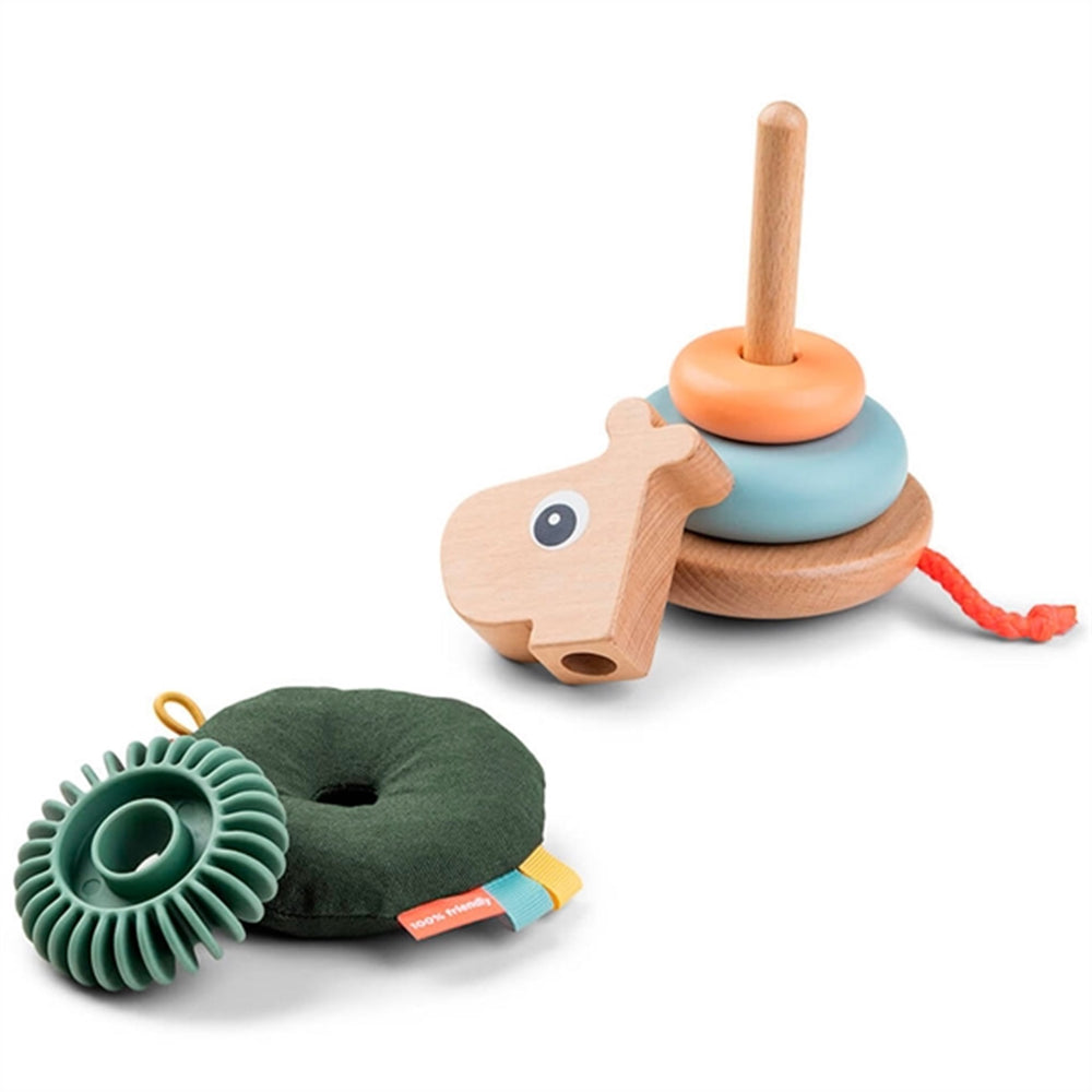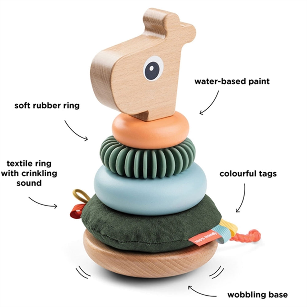 Det är lätt att använda för små barn från ett års ålder och framåt, och det är lätt att rengöra samt enkelt att förvara när lektiden är över. Den portabla designen gör att ditt barn kan ta med sig Raffi på äventyr överallt. Ge ditt barn en rolig och lärorik upplevelse med Done by Deer Stabletårn Raffi Colour Mix.