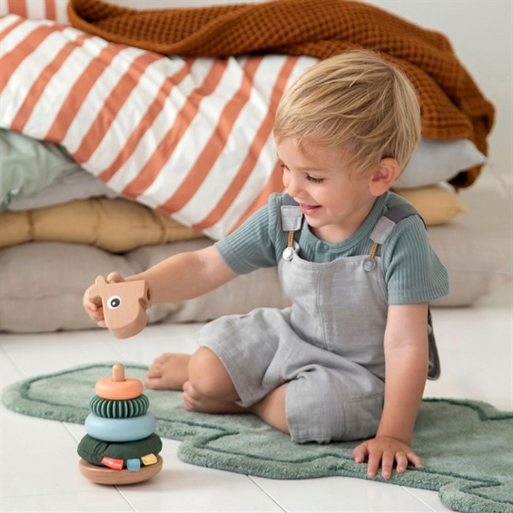 Stabletårnet har utformats med barns säkerhet i fokus. Hörnen är avrundade och materialen är noggrant testade och giftfria, vilket gör det säkert för små händer att utforska. Med flera delar som kan staplas på varandra erbjuder det en utmärkt möjlighet för att utveckla finmotoriken och lära sig om färger och former, vilket är grundläggande i barns tidiga utveckling.