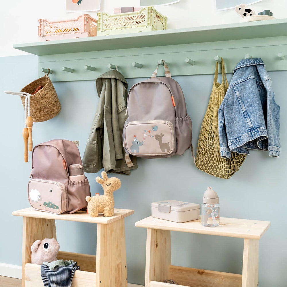 Upptäck DonebyDeer Sand Barnryggsäck Celebration 7,5 L, den perfekta följeslagaren för ditt barns äventyr. Denna rymliga och stiliga ryggsäck är utformad med en vadderad rygg och justerbara, vadderade axelremmar för maximal komfort. Den hållbara och vattenavvisande ytan säkerställer att innehållet hålls torrt och skyddat under alla väderförhållanden. Ryggsäcken är utrustad med ett stort fack, en framficka och två sidofickor, vilket ger optimalt med utrymme för förvaring och organisering. En rolig namnskylt med hjortvänsmotiv inuti gör den personlig och lätt att identifiera. Dessutom är designen i en fin sandfärg dekorerad med ett charmigt motiv av Birdee, Elphee, och Lalee, vilket tillför en lekfull touch. Lätt att hantera och anpassningsbar för olika behov, denna ryggsäck är det perfekta valet för allt från skola till utflykter. Den kombinerar funktionalitet med en stilfull design som garanterat kommer att uppskattas av både barn och föräldrar.