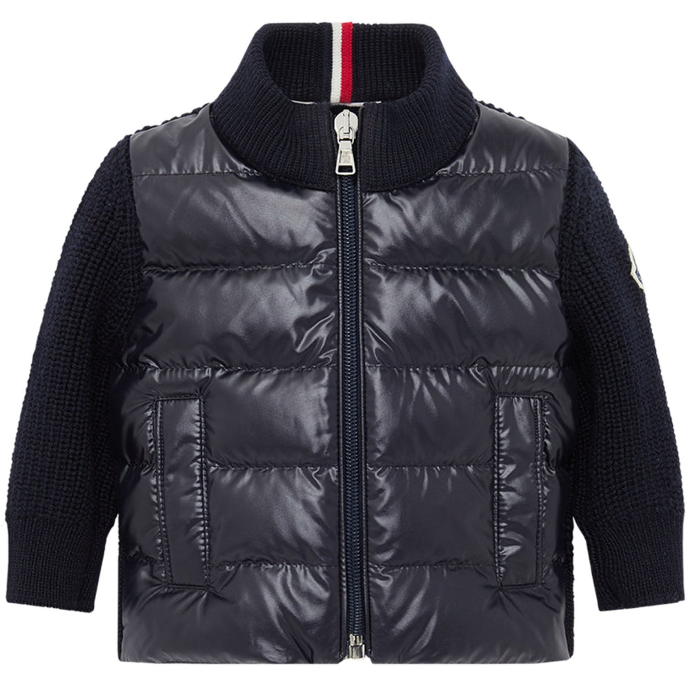 Bunta ihop din lilla i denna Moncler Navy Cardigan, perfekt för krispiga promenader eller glada lekdejter . Den här charmiga dragkedjan har en lyxig dunfylld front för varm värme och är finstickad av ultramjuk merinoull. Inuti kramar ett skonsamt foder i bomullsjersey om huden och säkerställer en komfort som varar hela dagen. Toppad med en skvätt panache, en tricolor trim spår kanterna, lägga till en igenkännlig viskning av Moncler uppskattade arv . Material: Yttre framsida: 100 % polyester - 1 material: 100 % bomull - bastyg: 100 % ull från jungfrulig ull, foder: 100 % bomull, dun 90 % + fjäder 10 % Tvättråd: Kom ihåg att följa tvätt- och användarinstruktioner Tillverkad av ultrafin merinoull, foder i bomullsjersey, polyesterdunfylld framsida, halv fiskares ribbstickade mätare 7, dragkedja, fickor med tryckknappsstängning, trefärgad kant"