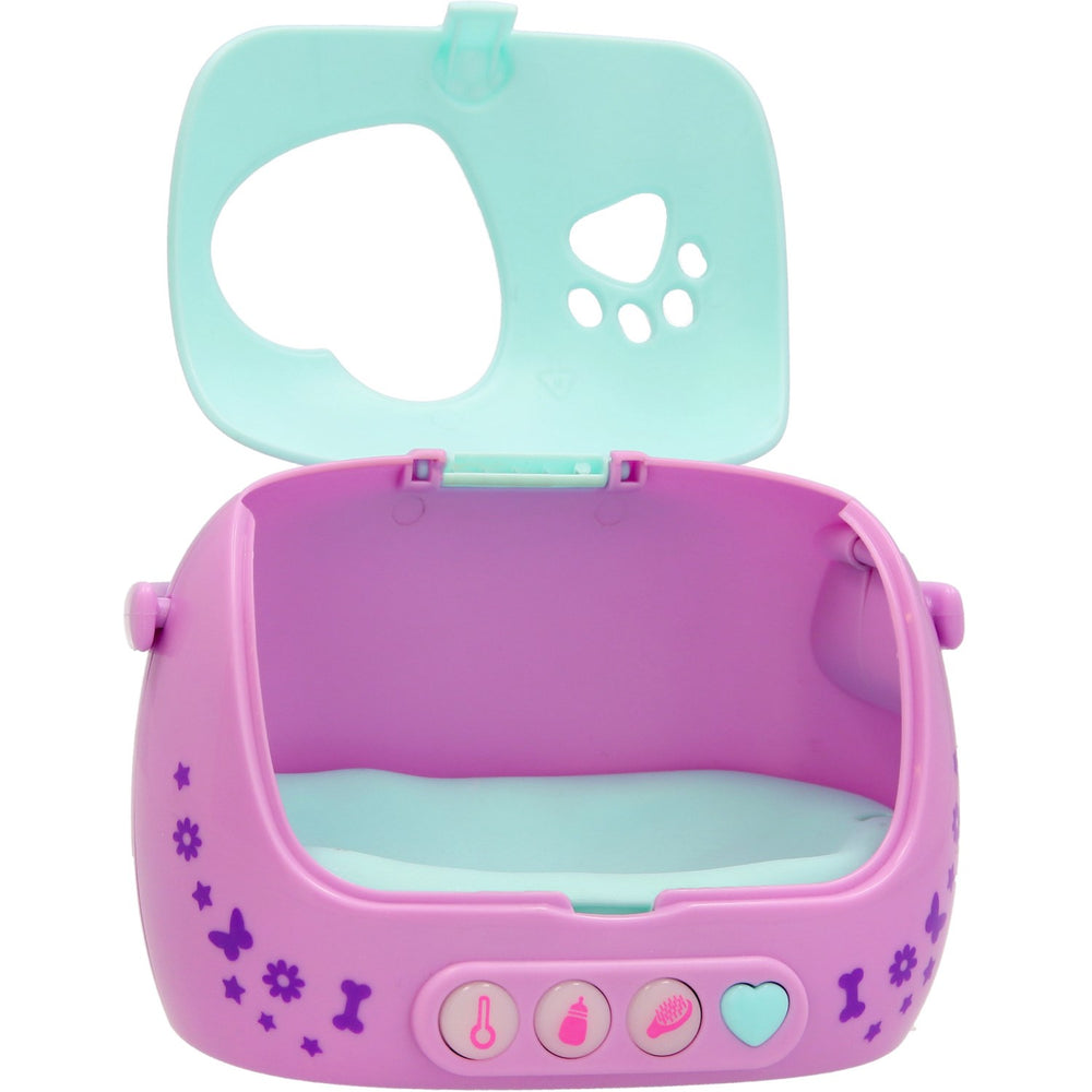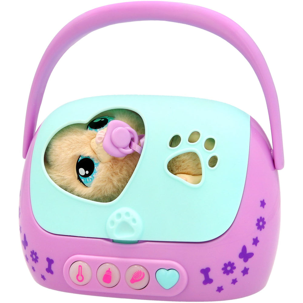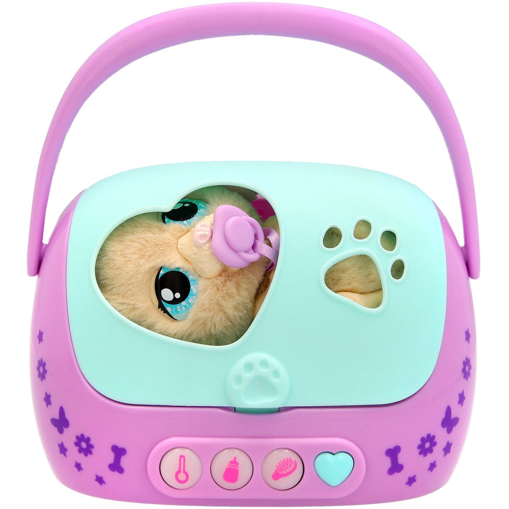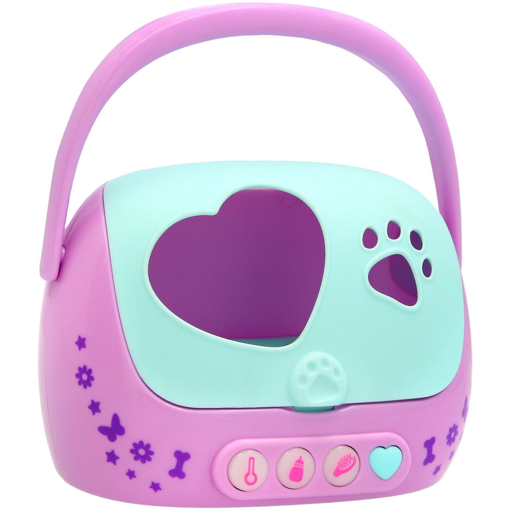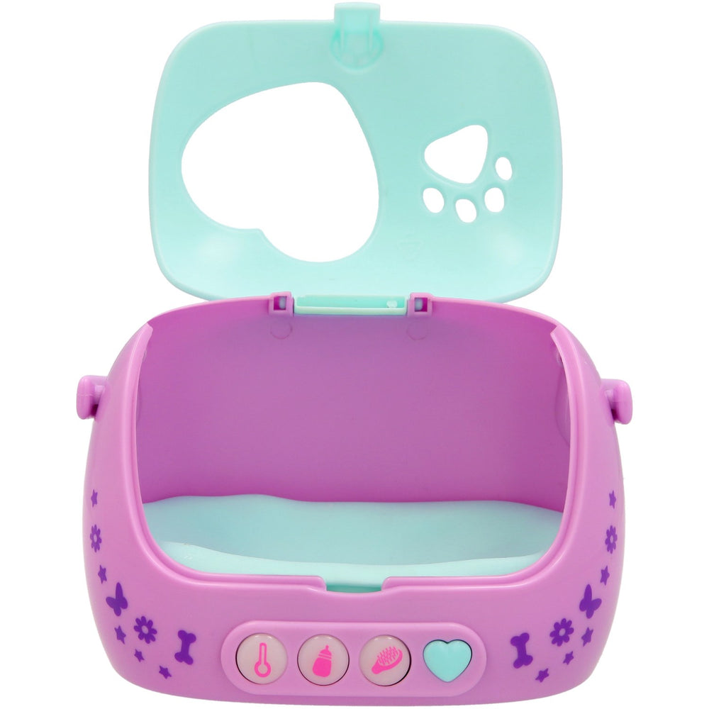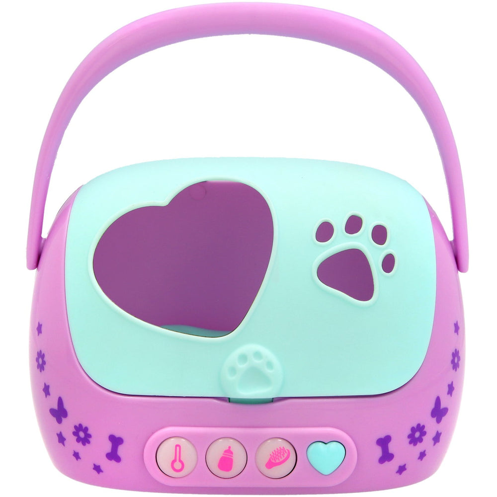 Den interaktiva hjärtknappen ljusar upp för att visa olika behov, vilket hjälper barnet att förstå och reagera på Baby Paws behov genom att använda rätt tillbehör som medföljer - en spruta för medicin, en flaska för matning och en borste för grooming. En enkel tryck-och-håll-funktion aktiverar viloläget, vilket underlättar för barnet att hantera leksaken självständigt.