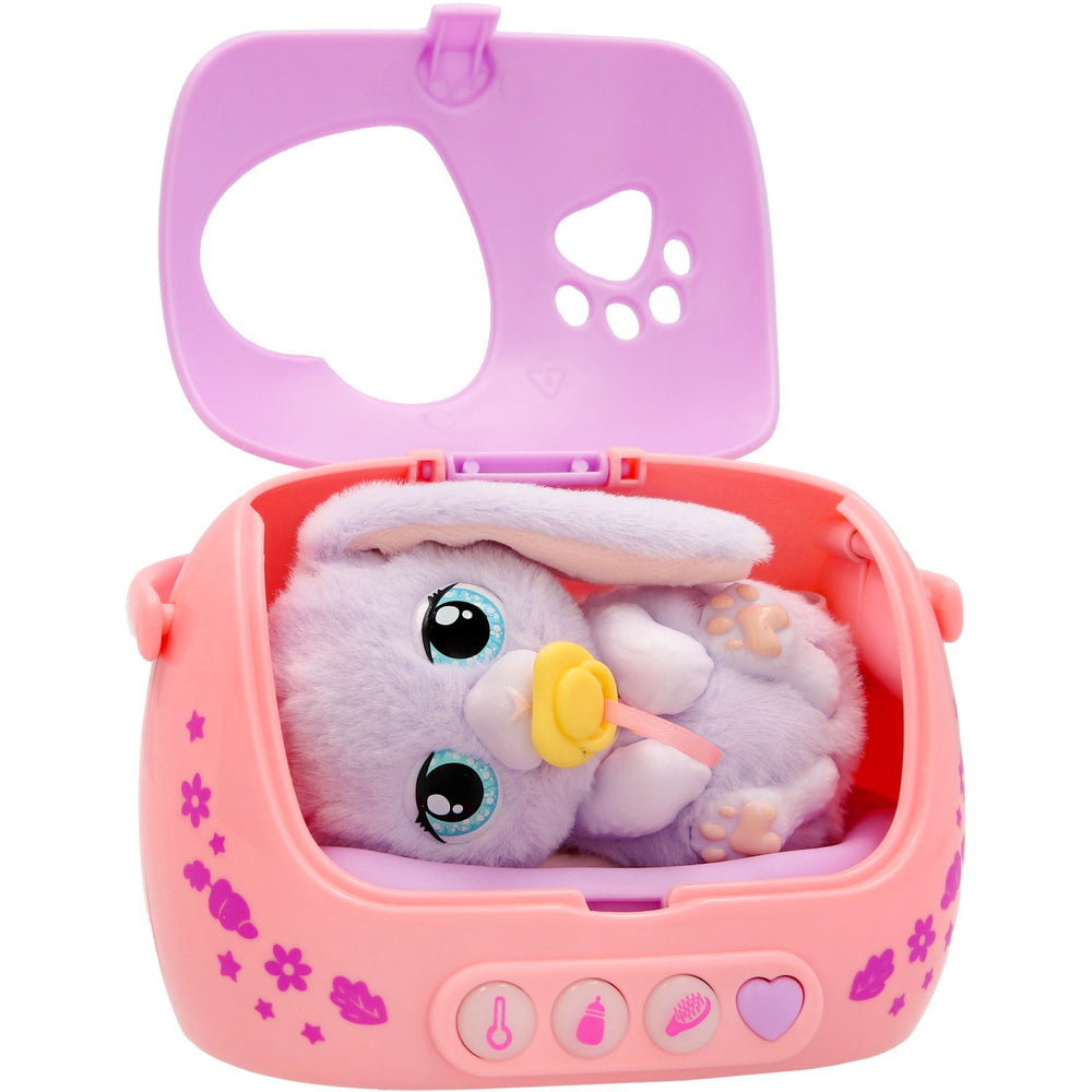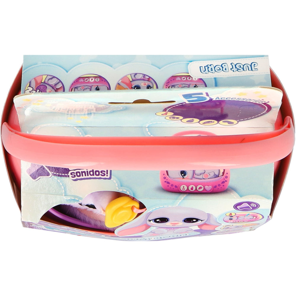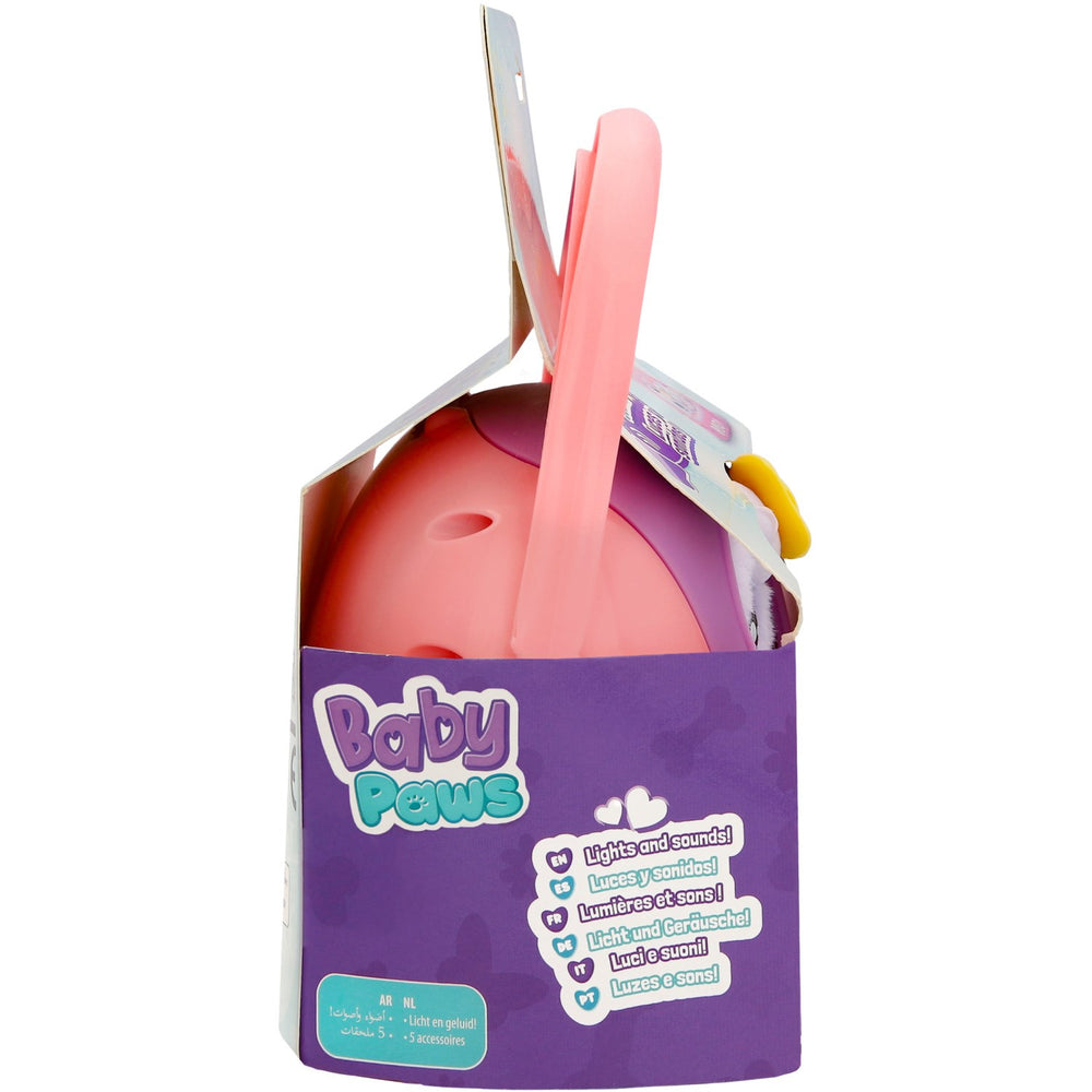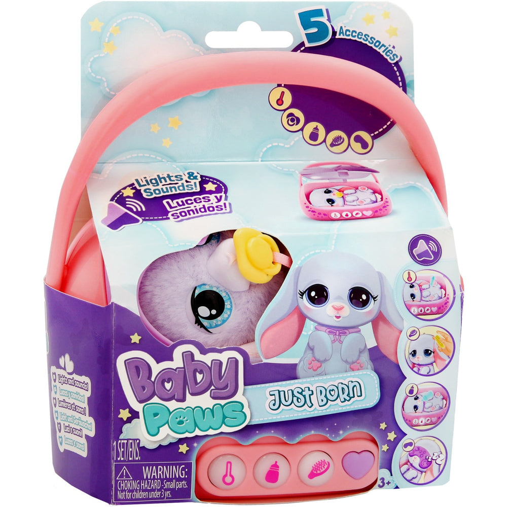Möt Baby Paws Just Born Kanin – en elektronisk och interaktiv leksak som är designad för att ge kärlek och omsorg till de allra minsta. Den här charmiga lilla kaninen behöver din uppmärksamhet och när du trycker på dess hjärtknapp lyser en lampa upp för att visa vad din fluffiga vän behöver för att vara glad. Utbudet av tillbehör ökar interaktionen; ge medicin med sprutan, se till att kaninen är mätt med hjälp av flaskan, eller använd borsten för att få pälsen att glänsa. Baby Paws kaninen är perfekt för barn från 18 månader och uppåt, säkerställandes att leken är både ålderslämplig och säker. Den tillhörande specialdesignade transportlådan med handtag gör kaninen lätt att ta med sig på äventyr, vilket även förenklar förvaring och transport. Enkel att använda, varje tryck och varje handling bidrar till barnets lärande om ansvar och känslomässig intelligens. Med den medföljande sömnmasken kan barnet lära sig om vilo- och viloutiner på ett underhållande sätt. Lek med Baby Paws främjar inte bara kognitiv och emotionell utveckling utan också finmotorik genom dess olika interaktiva element.