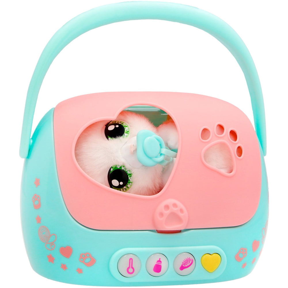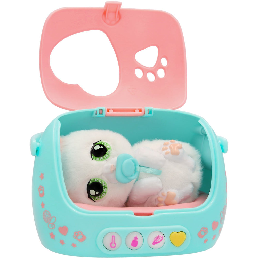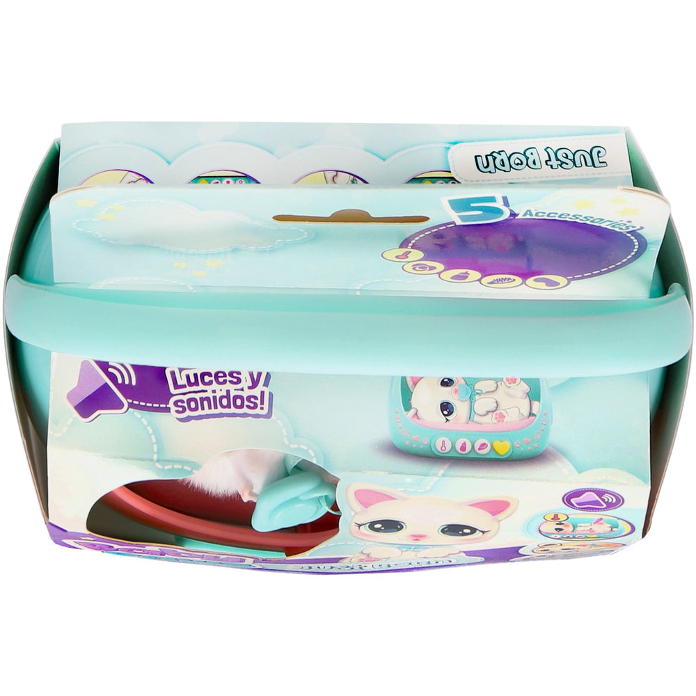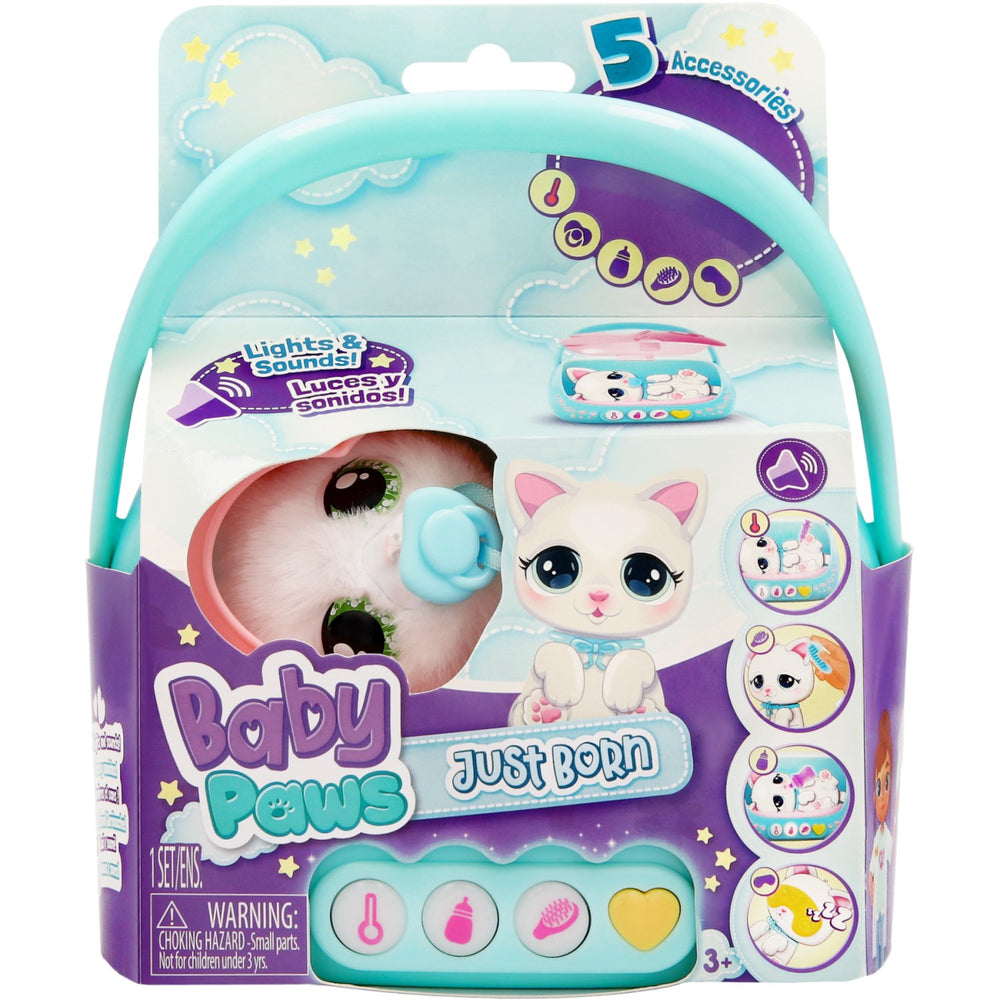 Upplev glädjen med Baby Paws Just Born Kat, den ultimata elektroniska och interaktiva leksaken för ditt barns tidiga utveckling. Med en enkel knapptryckning på hjärtknappen lyser en indikatorlampa upp för att visa vad det nyfödda katten behöver för att må bra, vilket både är underhållande och lärorikt för ditt barn. Baby Paws är inte bara charmig utan också designad för säker lek. Den är tillverkad av barnsäkra material och avsedd för små barn från 18 månader och uppåt. Med tillbehör som en medicinspruta, matflaska och en borste kan ditt barn öva på att vårda och ta ansvar, vilket stimulerar både empati och motoriska färdigheter. Denna leksak är enkel att använda och följer med en utförlig manual som hjälper barnet att förstå hur interaktionerna fungerar. Dessutom är den lätt att ta med sig tack vare den praktiska transportlådan med handtag, perfekt för småbarnsfamiljer på språng. Förvara alla delar tillsammans i lådan för att undvika förluster och göra underhållningen enklare. Med Baby Paws Just Born Kat får ditt barn en trygg och engagerande lekkamrat som kommer att bli en fast favorit hemma, samtidigt som leksaken bidrar till barnets utveckling på flera plan.