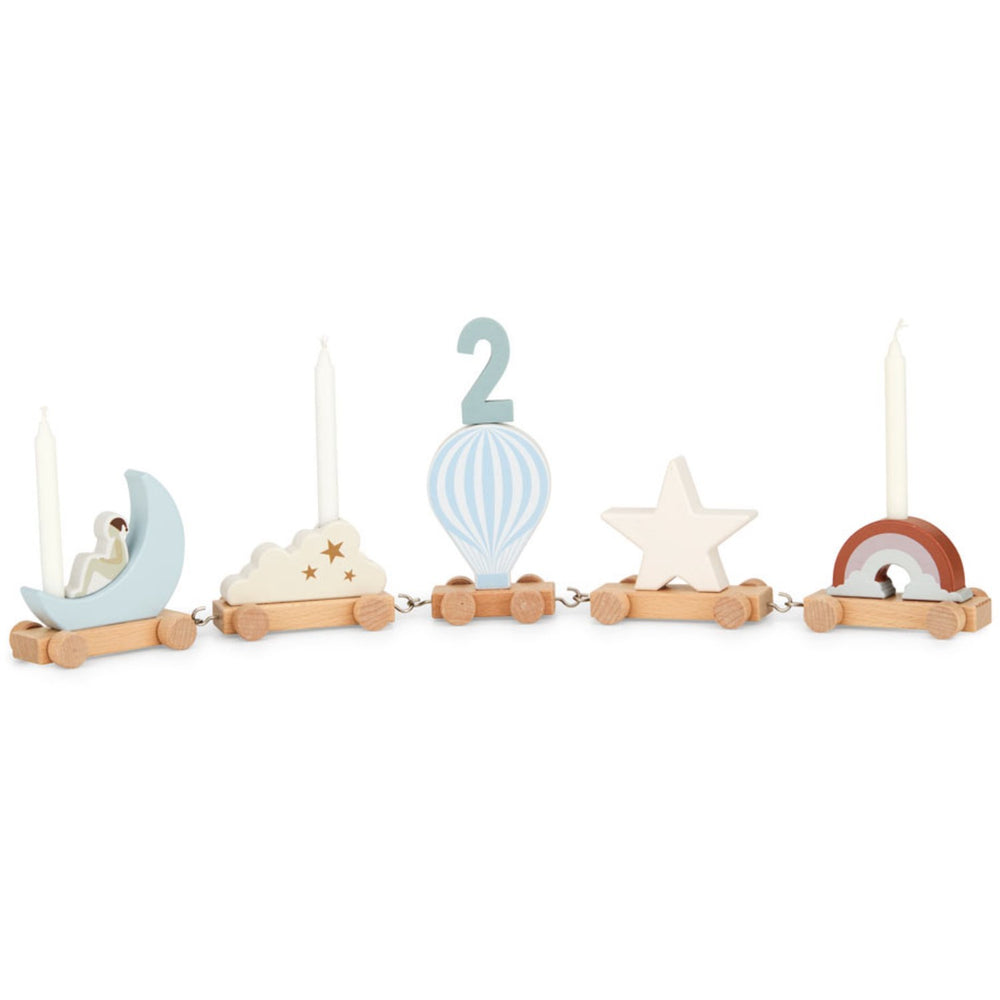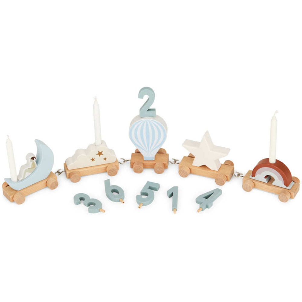 Upptäck glädjen i varje födelsedagsfirande med Cam Cam Copenhagens födelsedagståg från serien Dreamland. Detta FSC-certifierade träleksakståg i mjuka, barnvänliga färger erbjuder inte bara en ofarlig och robust konstruktion men även en tankeväckande detaljrikedom som stimulerar barnets fantasi. Varje del symboliserar en drömlik figur som stjärnan och regnbågen, lätt att koppla ihop med småtåliga metallkrokar. Inkluderar tränummer för att uppmärksamma varje nytt levnadsår från 1 till 6 år, vilket gör tåget till ett årligt återkommande och älskat inslag vid födelsedagsfiranden. Perfekt för att förvara minnen och enkel att underhålla, blir Dreamland födelsedagståg en varaktig minnessak i varje barns liv. Material: MDF / Solid bok / Metallkrokar Mått: 51,5 x 4 x 11 cm Tvättråd: Får ej tvättas. Torka endast av med en torr trasa. Certifieringar: FSC 100% Extra: Varningar: Ta bort all förpackning före användning.